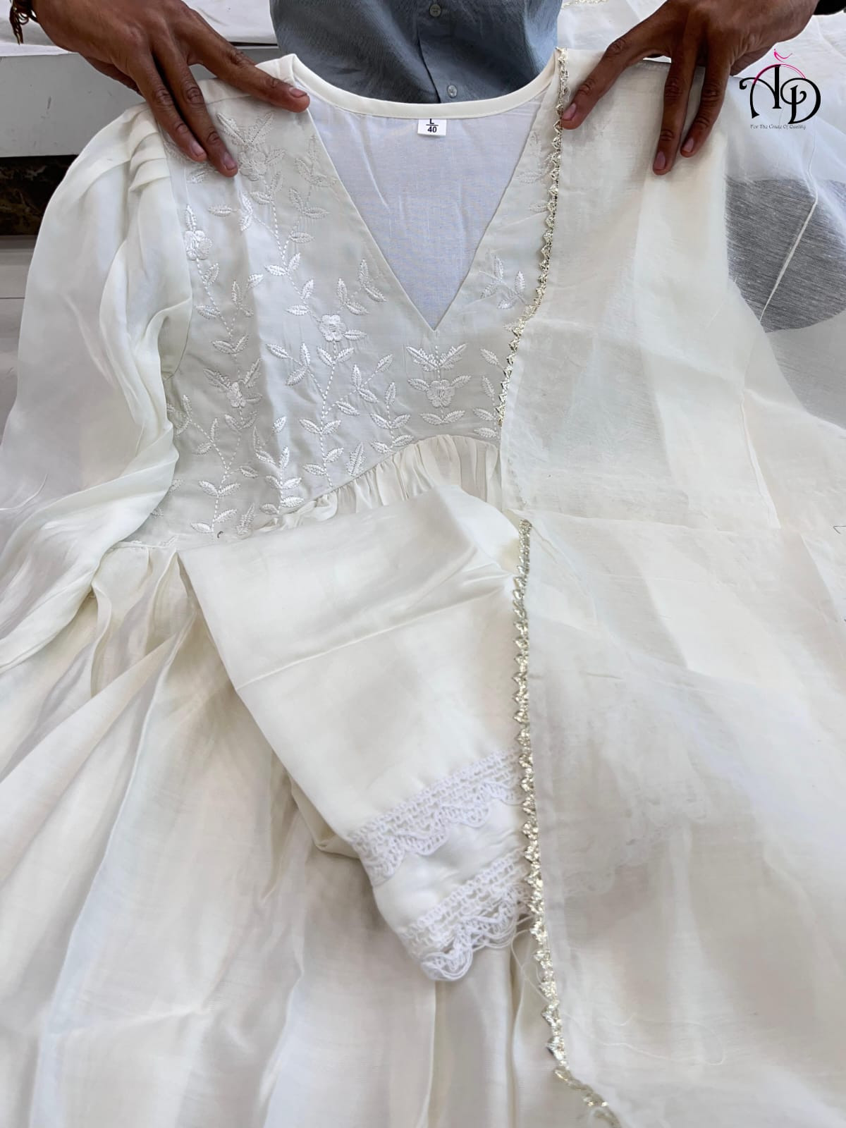 Step into timeless grace with this exquisite Chanderi Silk Anarkali Gown, beautifully complemented by a breathable Cotton Pant for effortless comfort. The silhouette flows with regal charm, while a handcrafted Chanderi Dupatta adds a delicate layer of elegance with its soft texture and subtle sheen. Perfect for festive gatherings, intimate celebrations, or when you simply want to feel your most graceful self.