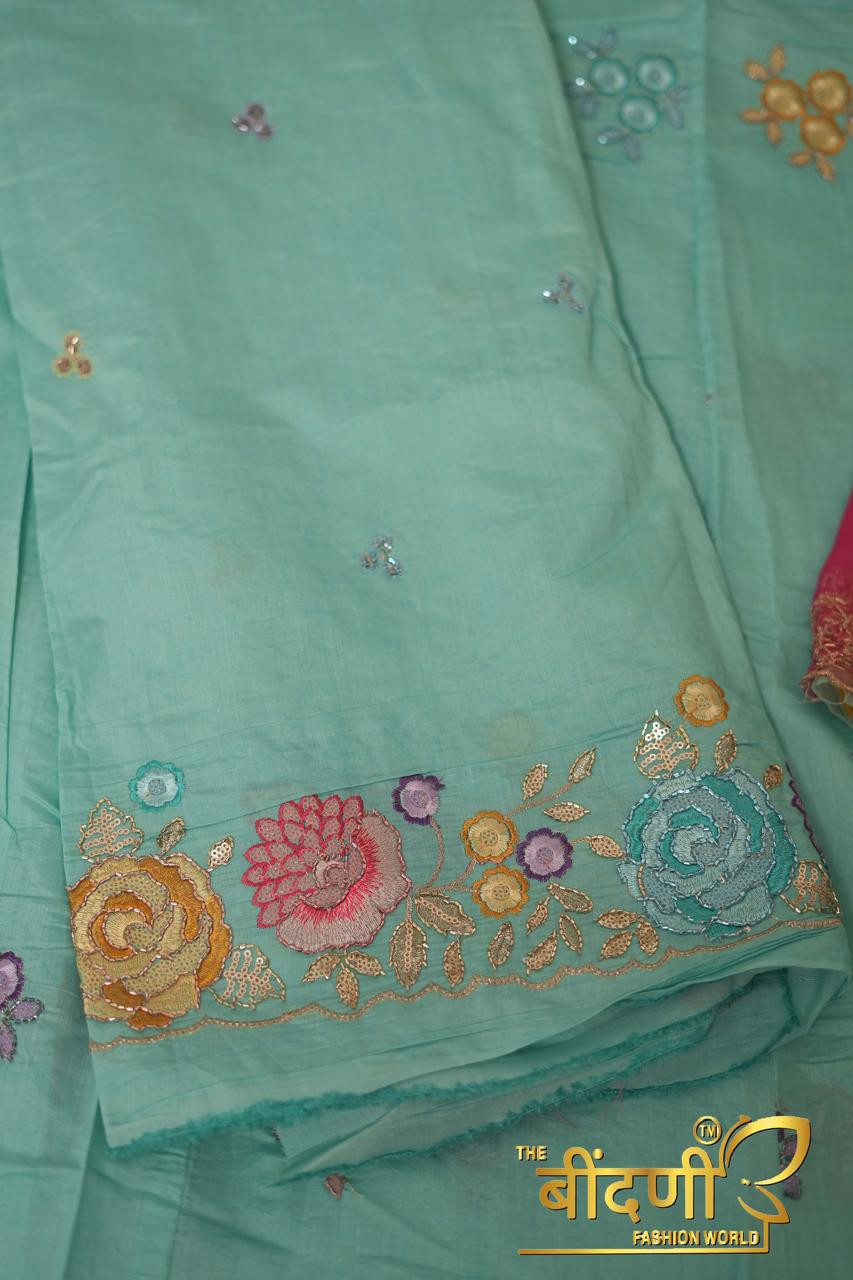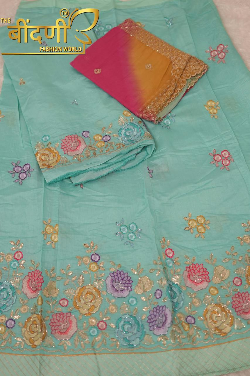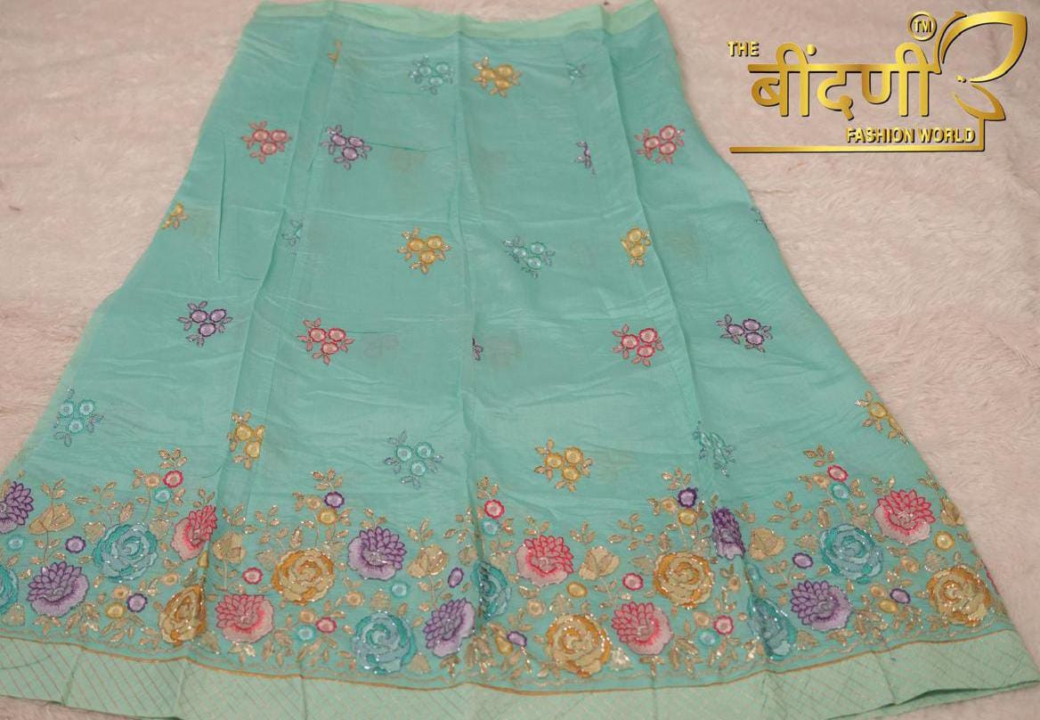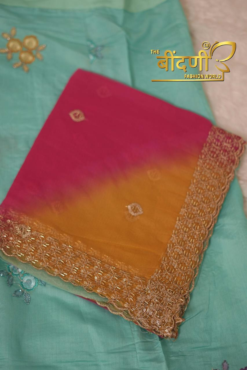 Work: Embellished with heavy fancy cutdana work, adding sparkle and sophistication.