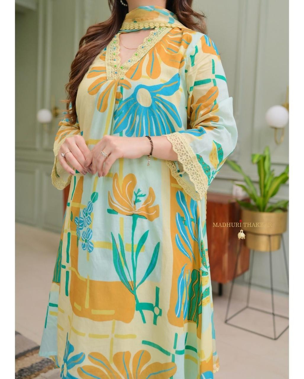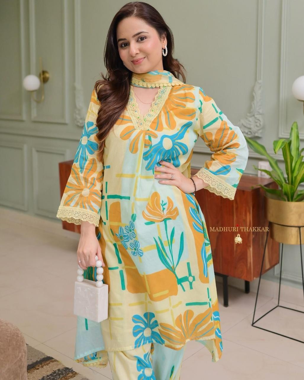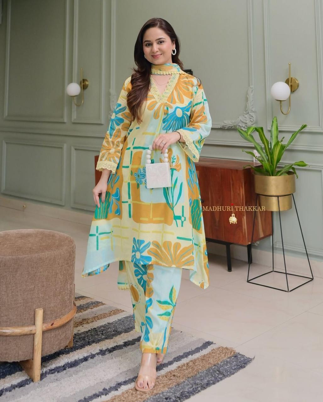 It is paired with matching comfort fit pants and pure cotton Dupatta It comes with lining