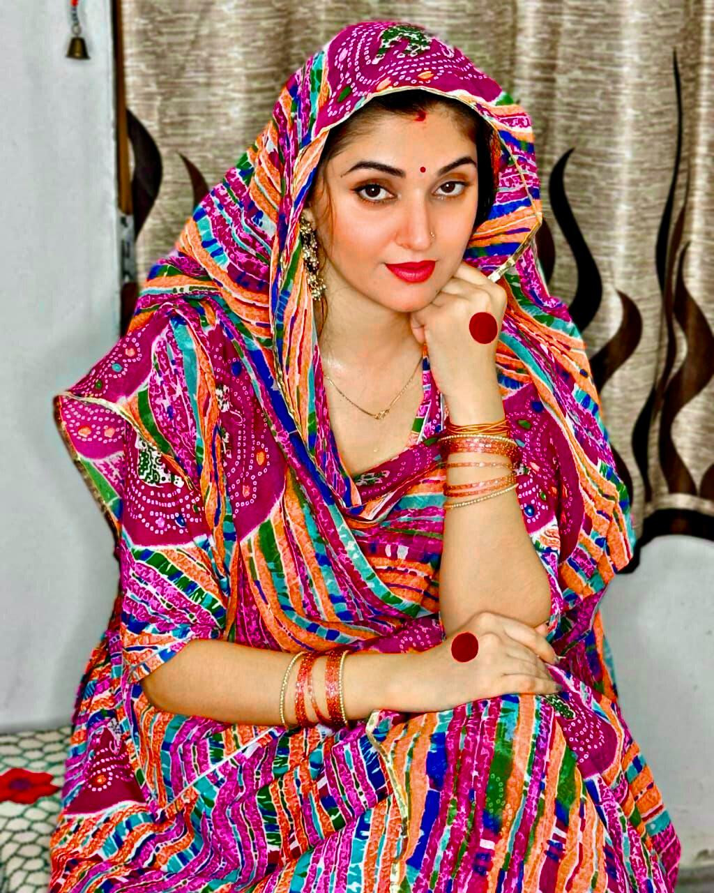 Heavy pure 72x72 cotton vilayti procin print shaded lehriya border chunnariFabric suit.