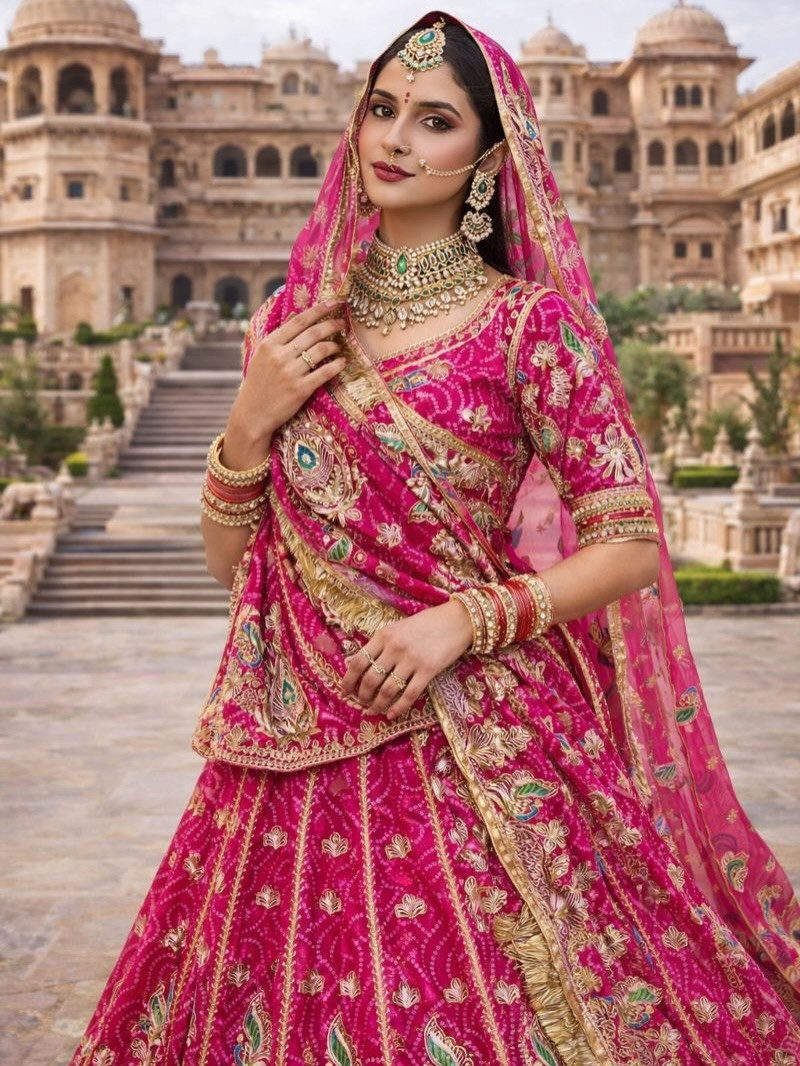 Experience timeless elegance with this exquisitely crafted Designer 4 Meter Flared Bandhej Print Lehenga, designed to reflect royal heritage and festive grandeur. Made from premium Royal Pure fabric, the lehenga offers a luxurious drape with a graceful flare that enhances every movement.