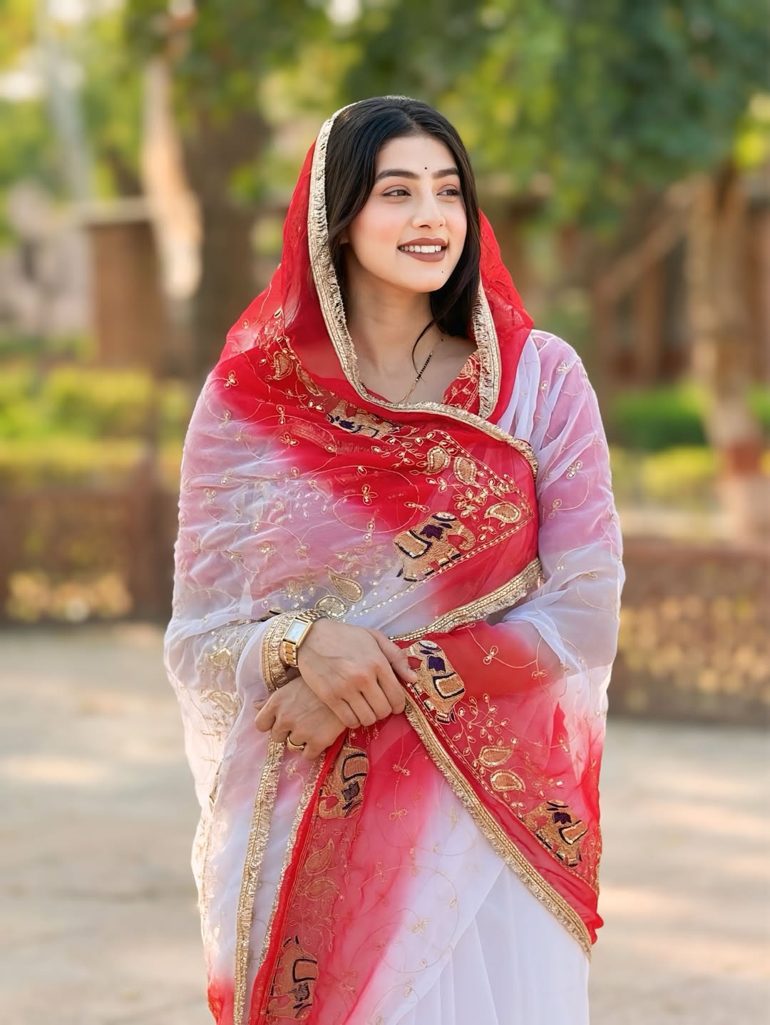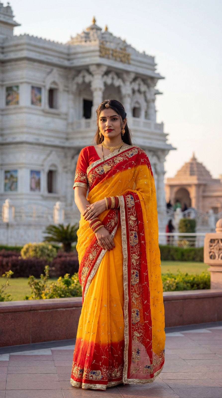 The lightweight georgette fabric ensures a soft drape and comfortable wear, making it perfect for festivals, wedding functions, cultural events, and special occasions.