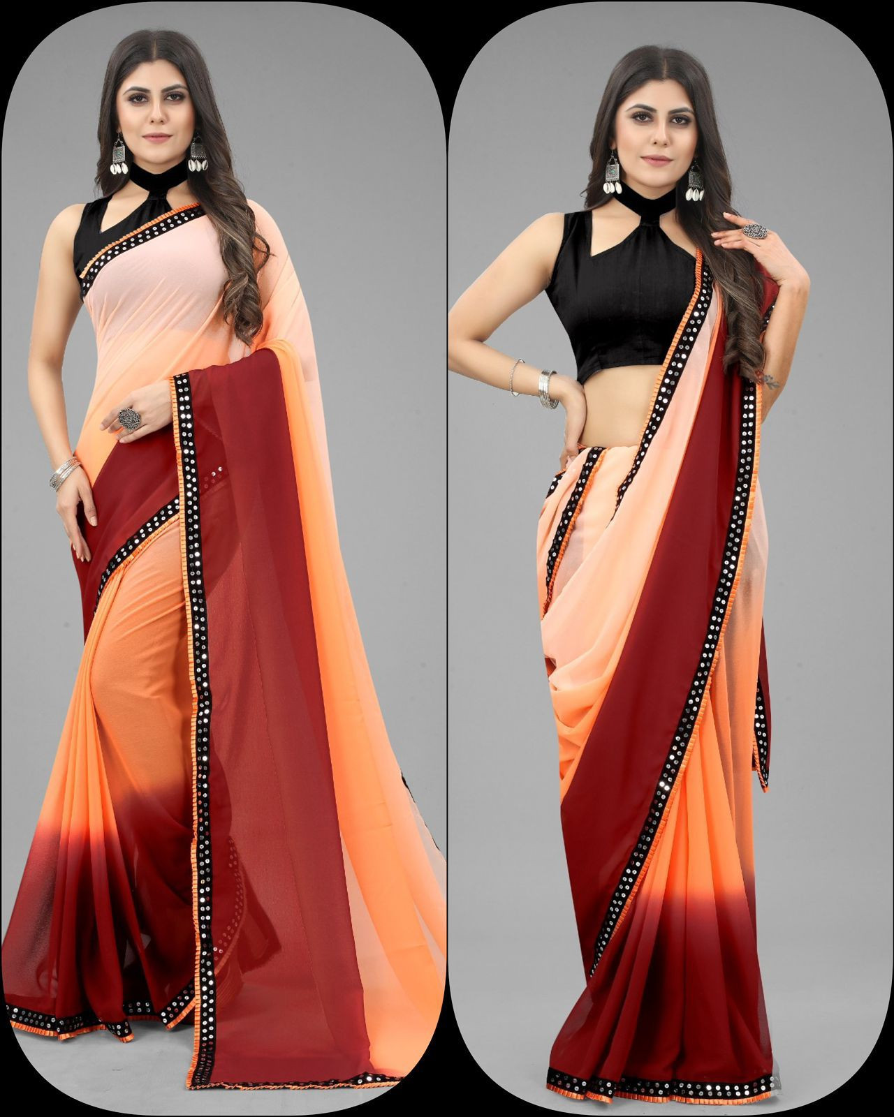 Saree Fabric - Pure Gorgette Two shaded with beautiful Sequence less Order with fancy stylised ……
