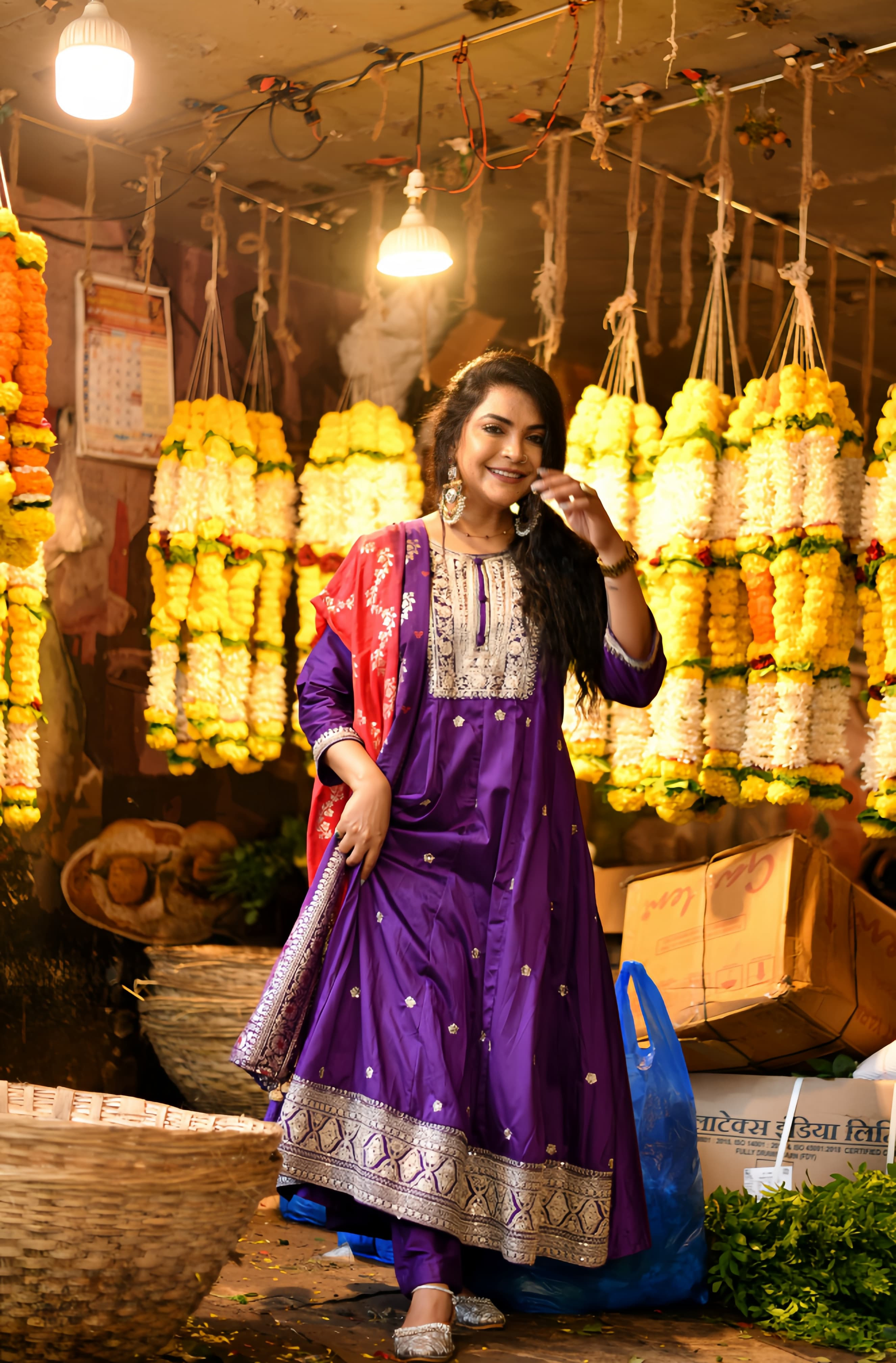 Elegance & Style Exquisite Anarkali Flared Silk Kurti Set -
