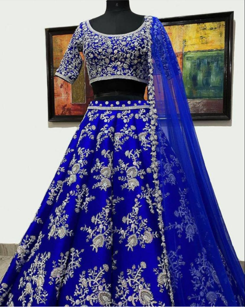The set includes a beautifully embroidered blouse and a soft mono net dupatta with delicate embroidery — perfect for weddings, receptions, festivals, or special occasions.
