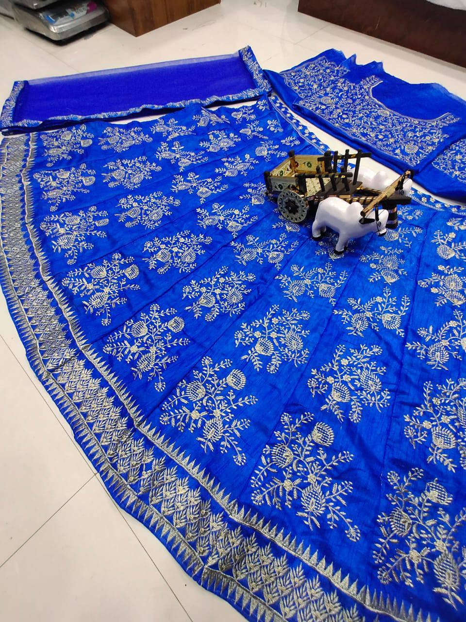 Step into timeless elegance with this exquisite Bangalori Satin Silk Embroidered Lehenga Set. Crafted from premium Bangalori satin silk, this semi-stitched lehenga showcases intricate embroidered work that adds a regal charm to your look.