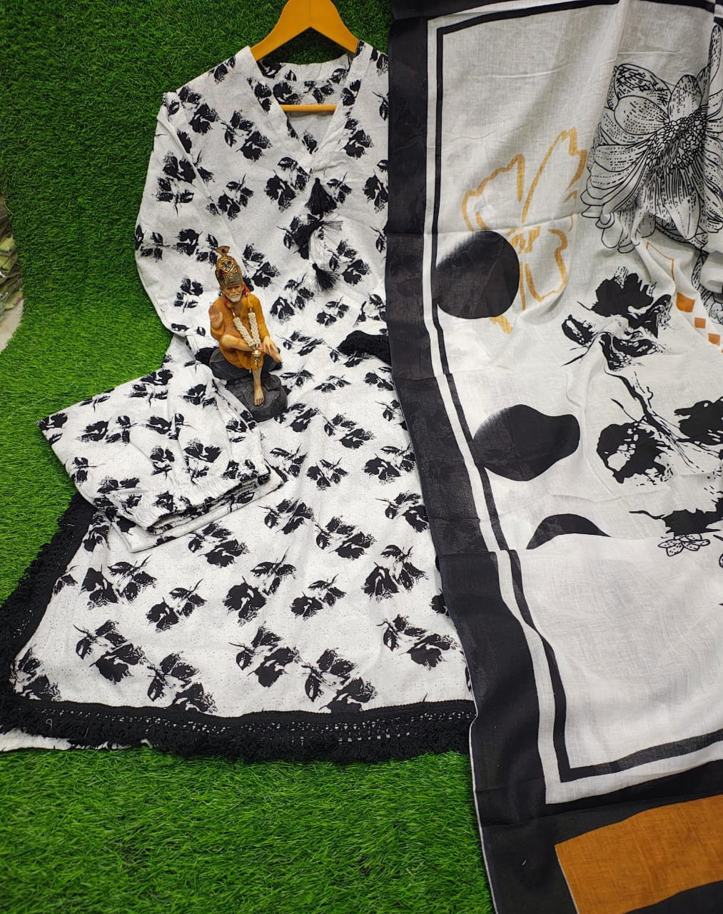 Work : less work on sleeves and bottom of kurta and tussles on neck
