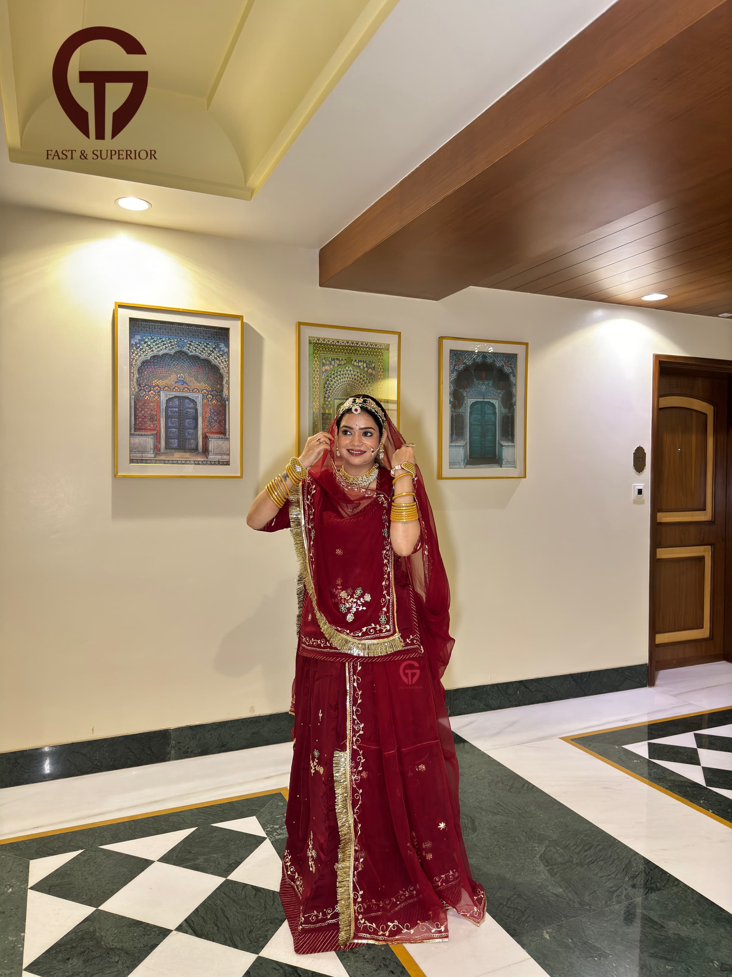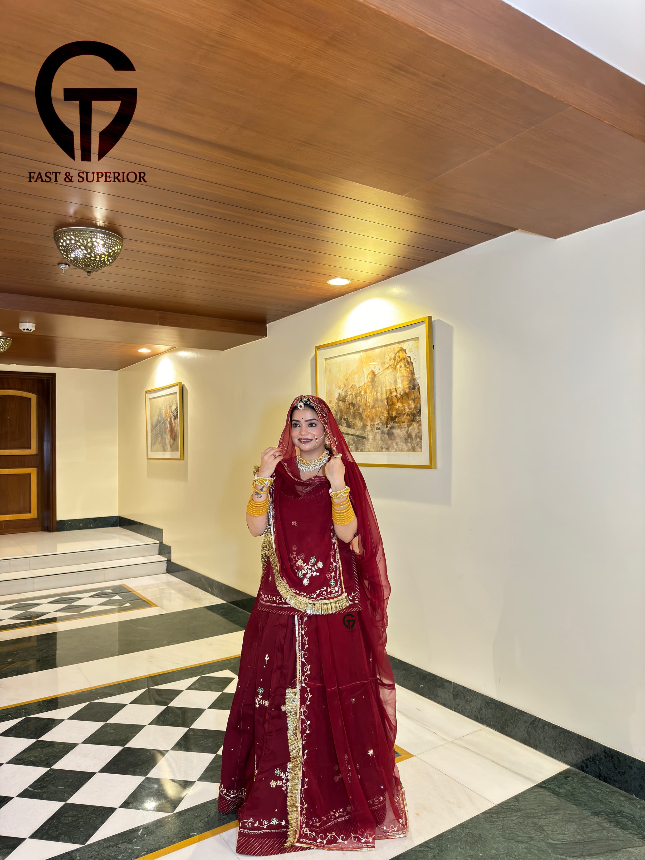 Elegant Partywear Important Crepe Maroon Coloured Humrahi Rajputi Poshak