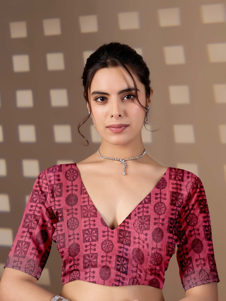 Upgrade your ethnic wardrobe with this elegant soft linen cotton saree, designed to offer both comfort and timeless style. The saree features a beautifully crafted digital printed pallu adorned with artistic traditional motifs in a graceful pink shade, making it perfect for both casual and festive occasions. The classy contrast border enhances its overall appeal, adding a touch of sophistication and richness. Paired with a matching contrast printed blouse piece, this saree is a perfect blend of tradition and modern elegance.