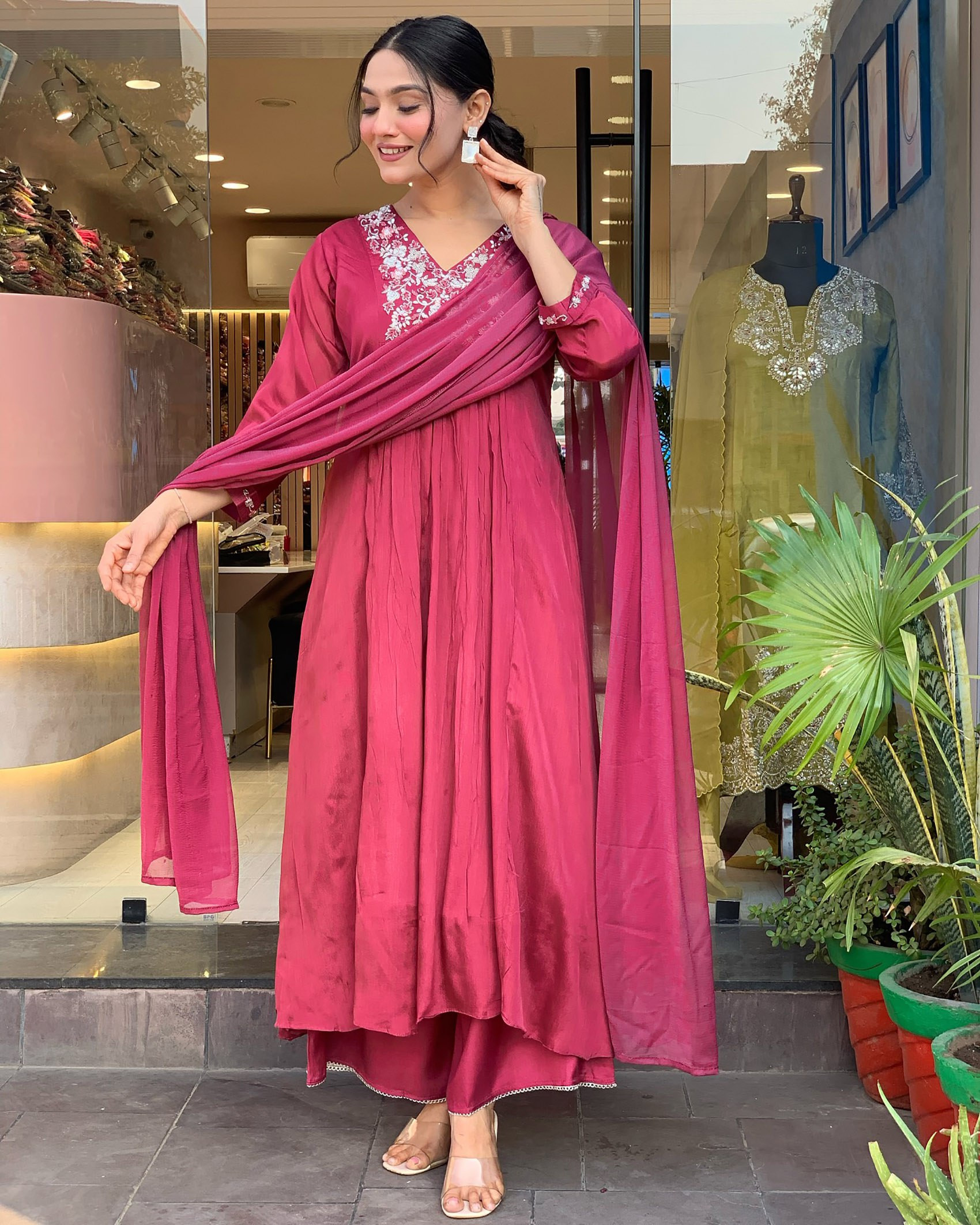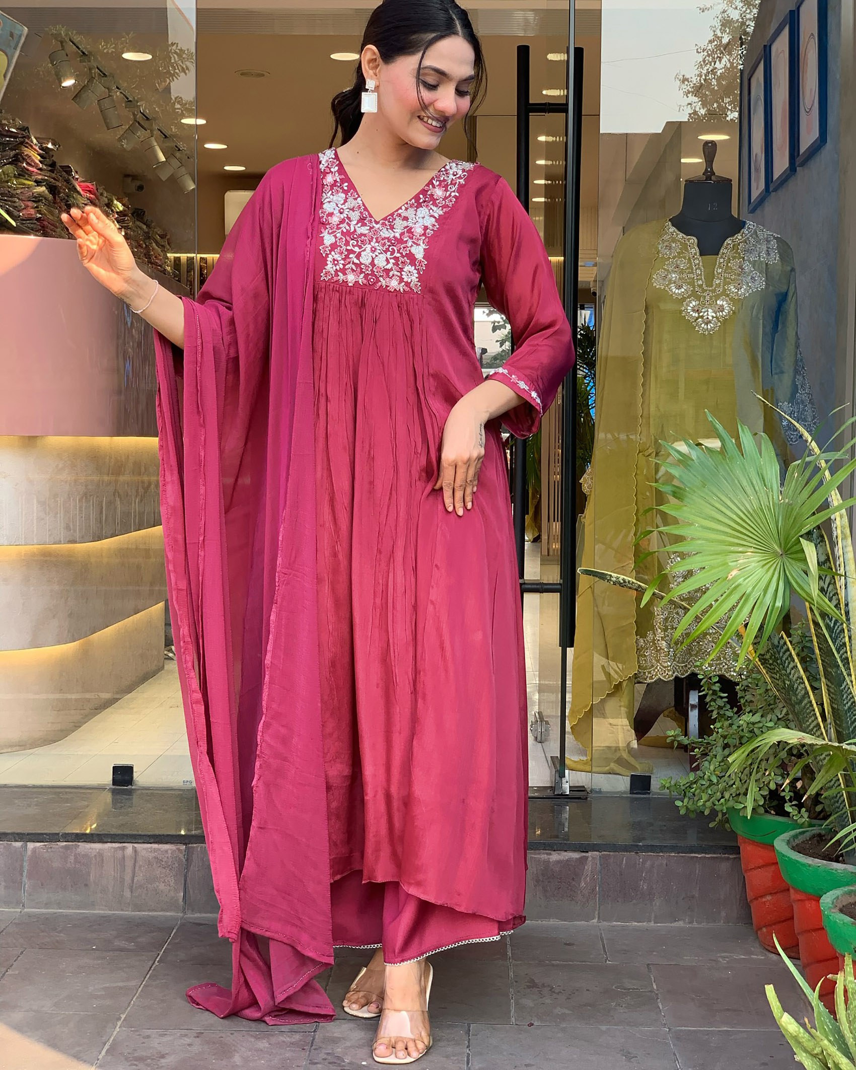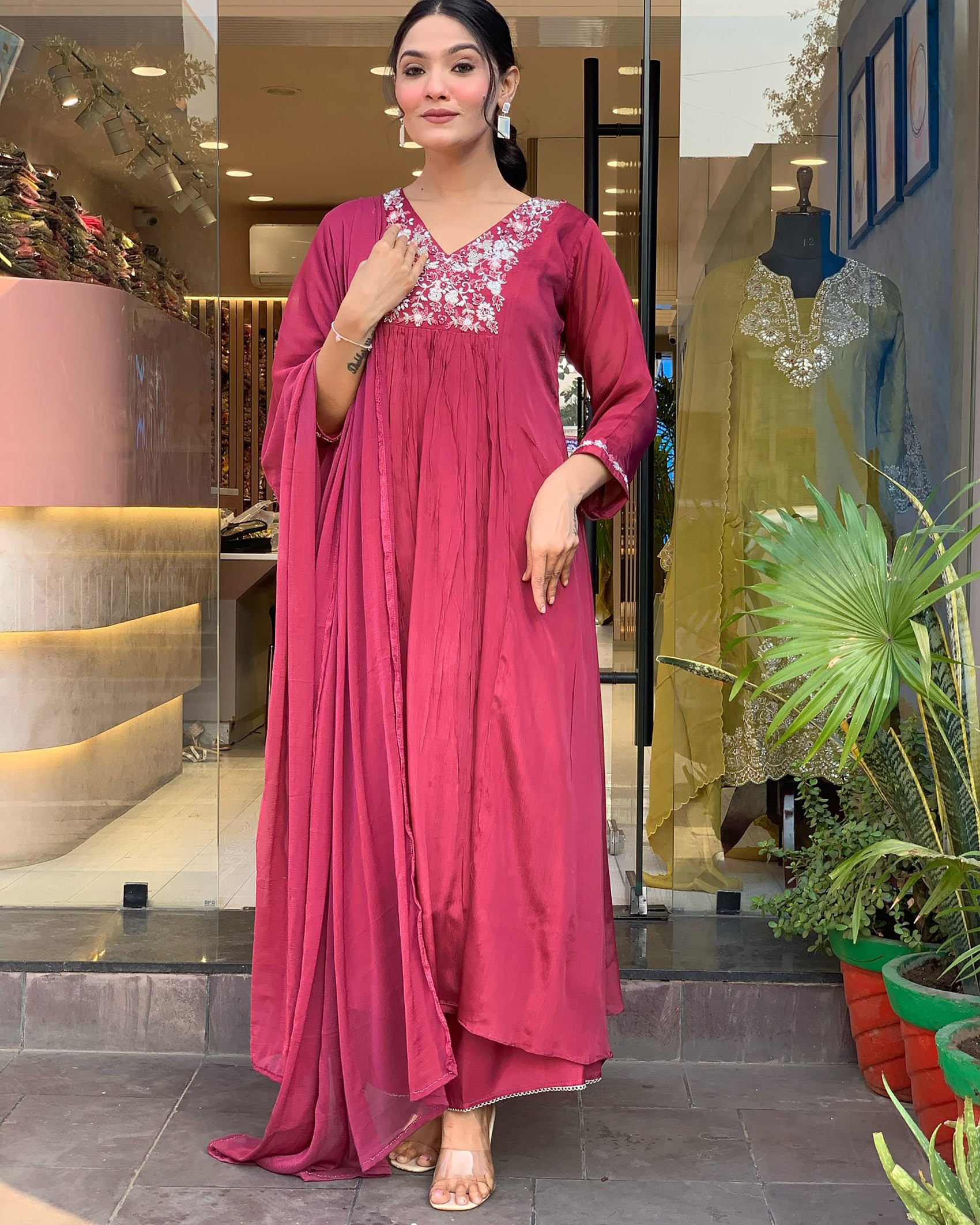 Step into grace and elegance with this beautifully crafted Women’s Kurta Pant Dupatta Set. Designed in premium Chinon fabric, this outfit ensures both comfort and style.