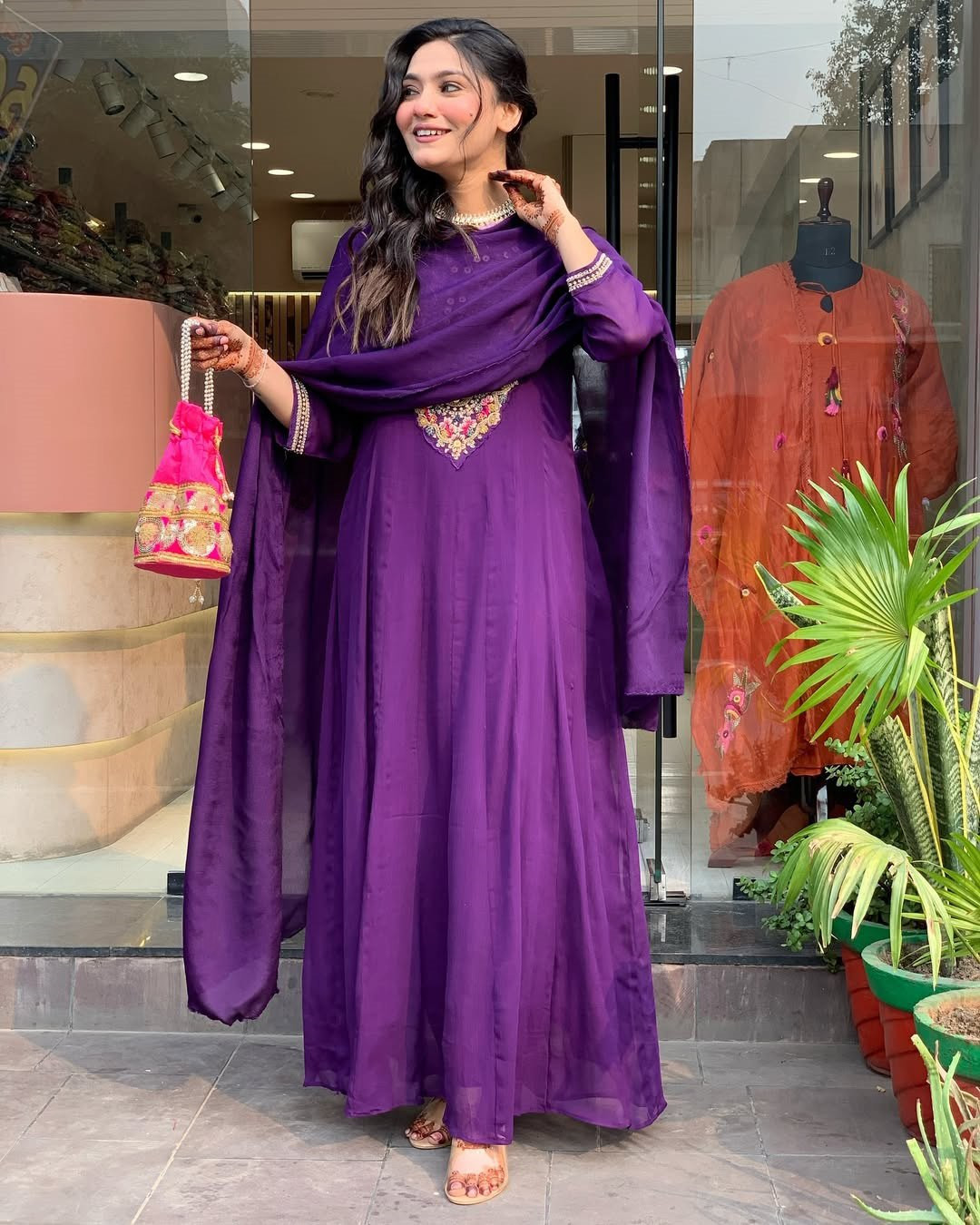 Elevate your ethnic wardrobe with this stunning Embroidered Georgette Stitched Anarkali Gown paired with a matching dupatta. Designed with rich vichitra fabric and intricate embroidery work, this outfit blends elegance with comfort. The flowing 2.7-meter flair and full inner lining add grace to every movement, making it perfect for weddings, festive occasions, or special events.