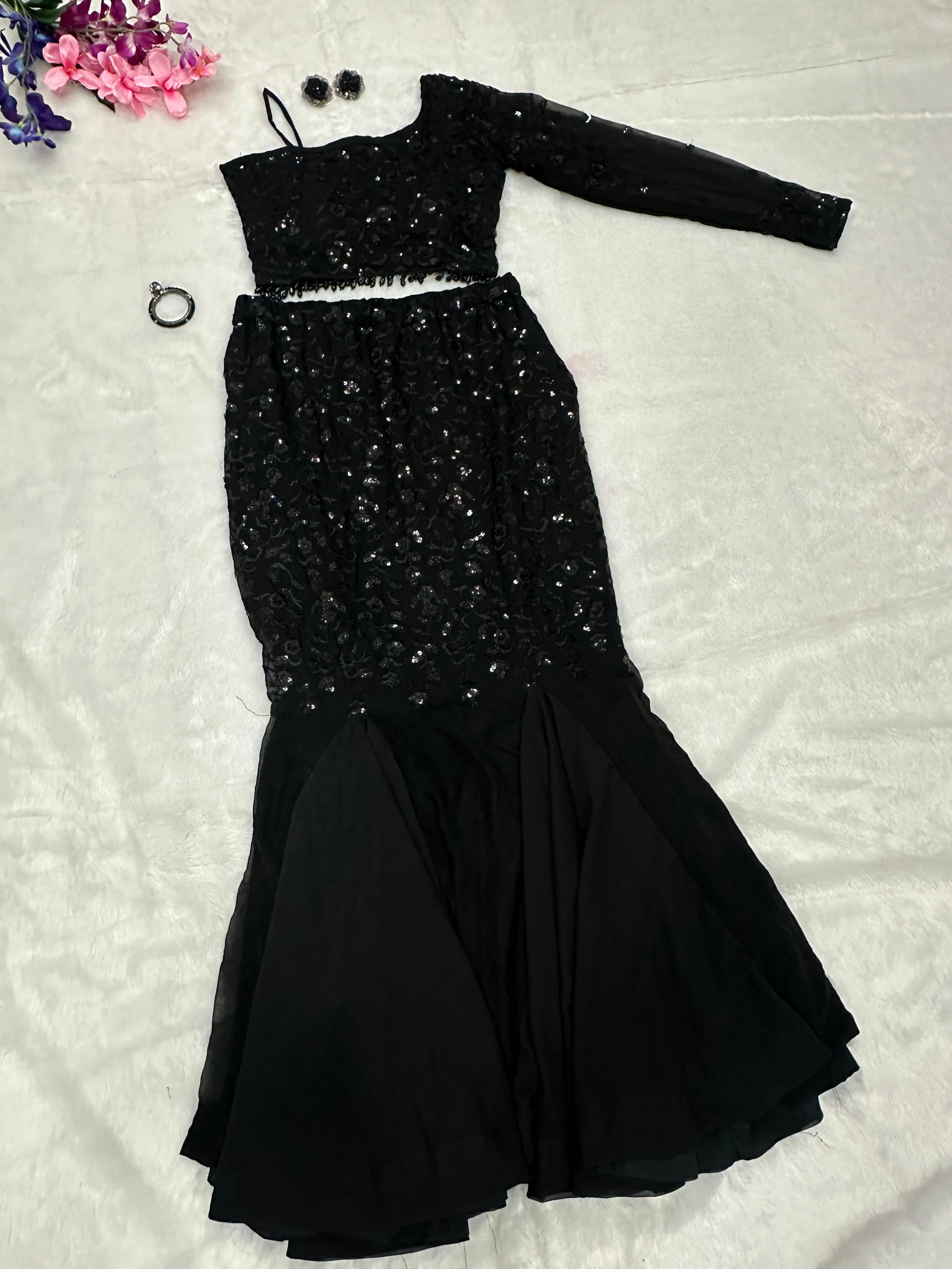 lehnga - Pure Georgette Embroidery Sequins work lehnga with cancan