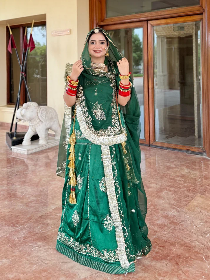 The Semi-stitched Lehenga Waist and Hips are Customizable from 28 to 44 inches and from 32 to 44 inches respectively and Lehenga Length is 42 inches
