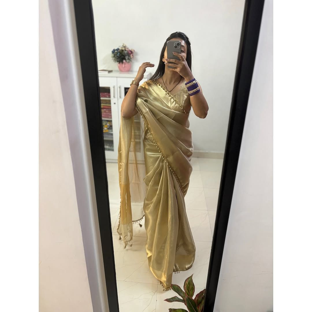 Fabric: Premium Tissue Saree with Luxurious Zari Weaving