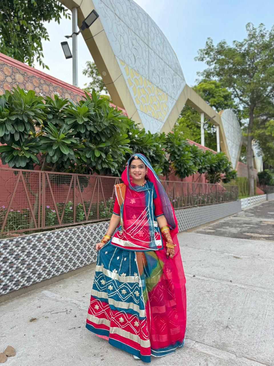 The Cotton Rajputi Poshak is a traditional attire worn by Rajput women, designed to combine the regal and cultural richness of Rajput heritage with the comfort of cotton fabric. While the Net Rajputi Poshak is more formal and often worn for weddings and festive occasions, the Cotton Rajputi Poshak is typically a lighter, more breathable option, suitable for warmer climates or daily wear while still maintaining a royal aesthetic.