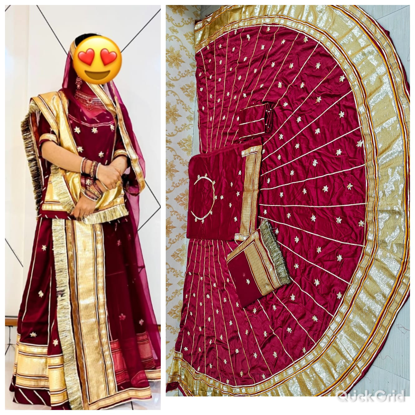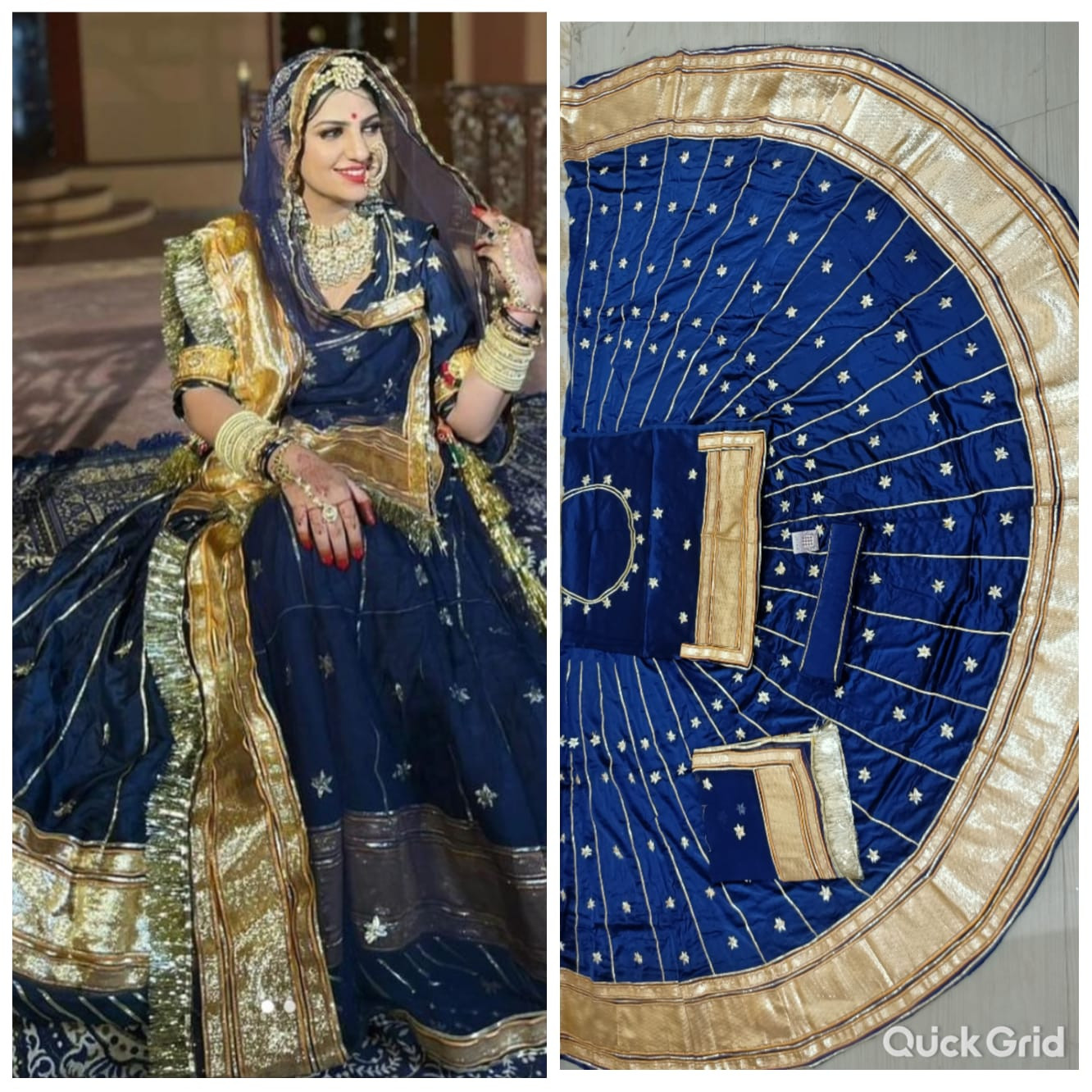 The primary fabric is satin, which has a glossy, lustrous surface that gives the outfit a rich and elegant look. Satin fabric drapes beautifully and adds an element of luxury to the traditional Rajputi ensemble.