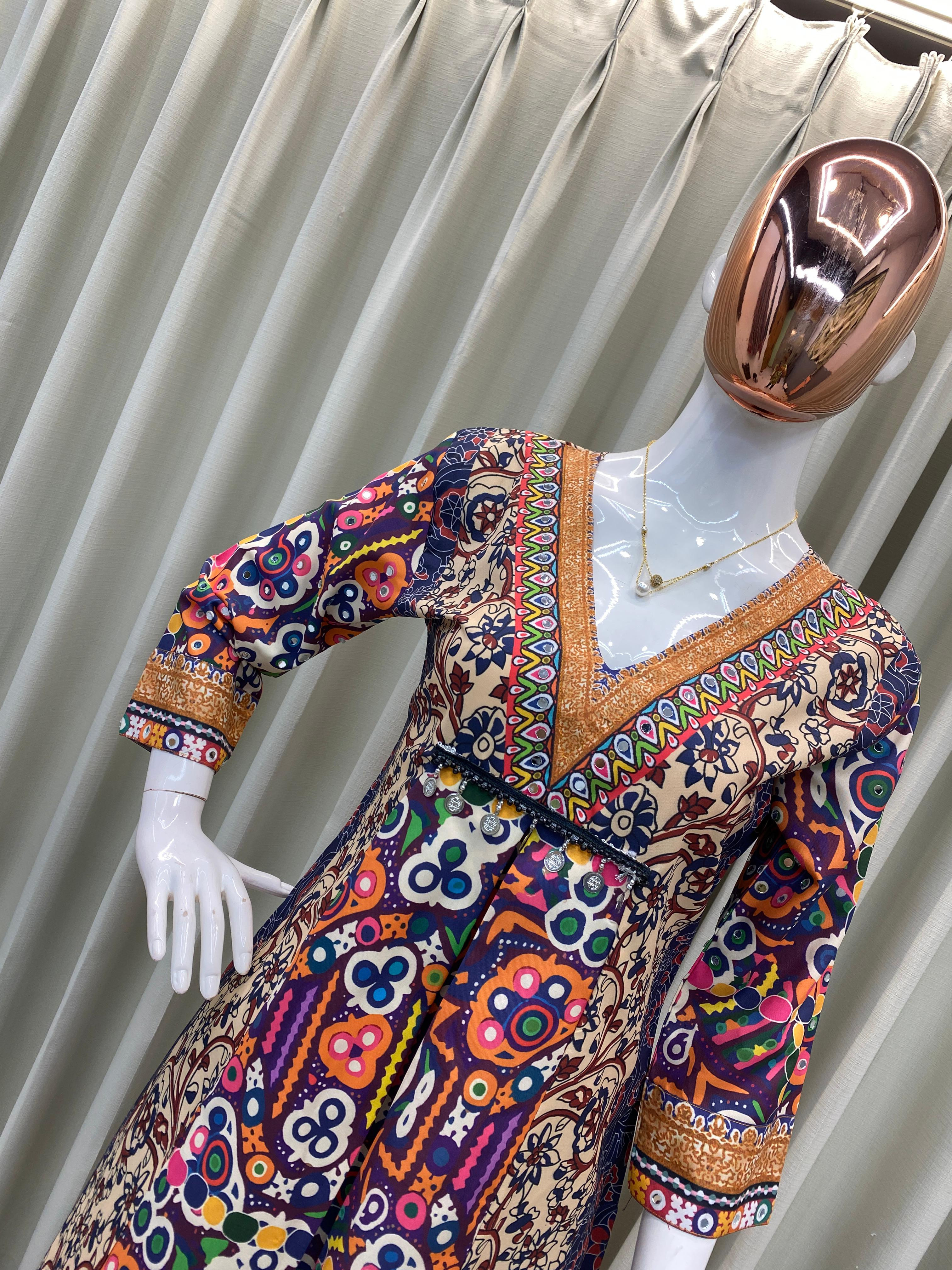 • TOP FABRICS :PRINTED  REYON WITH COIN LACE WORK ON NECK(FREE SIZE)