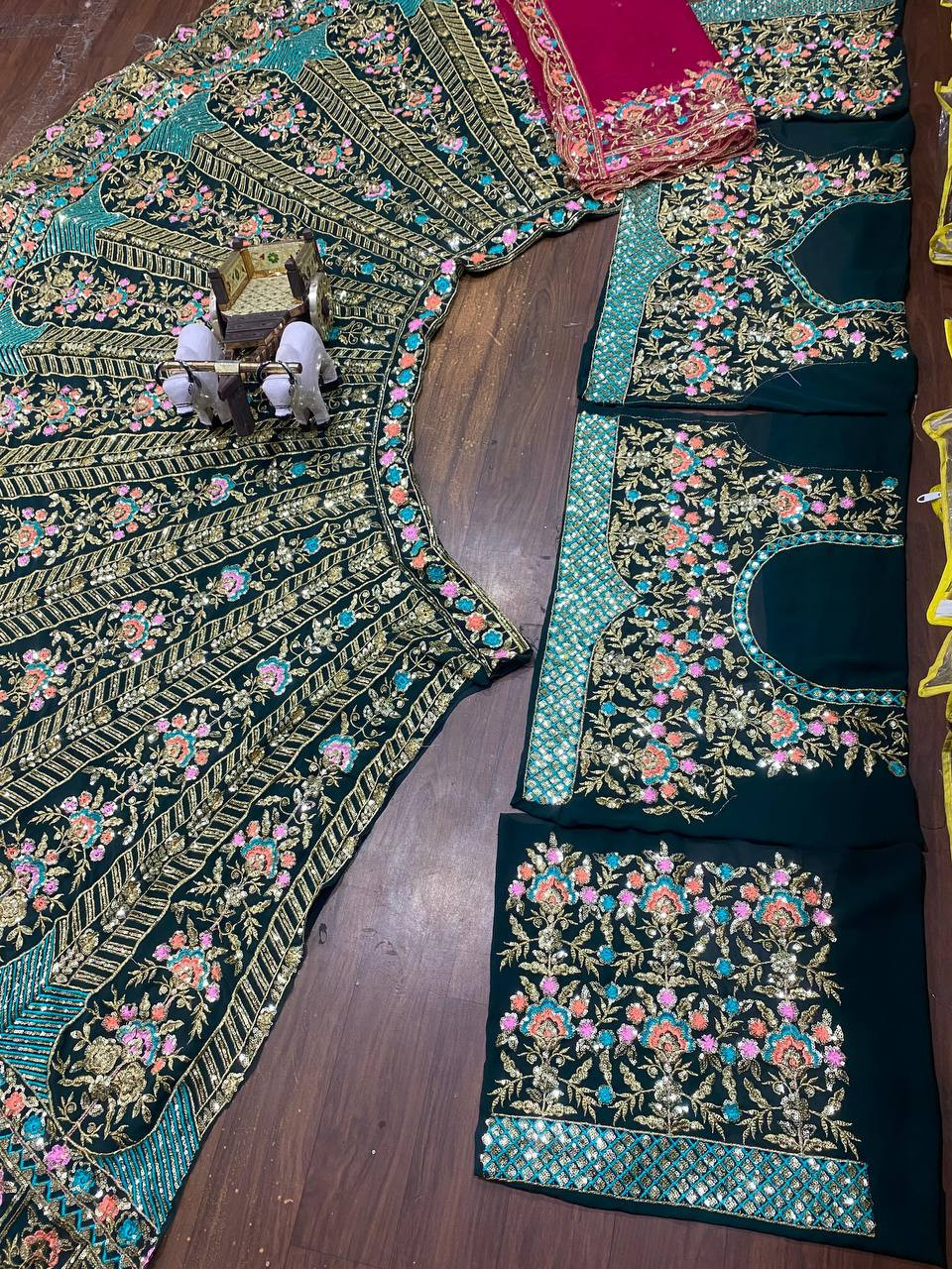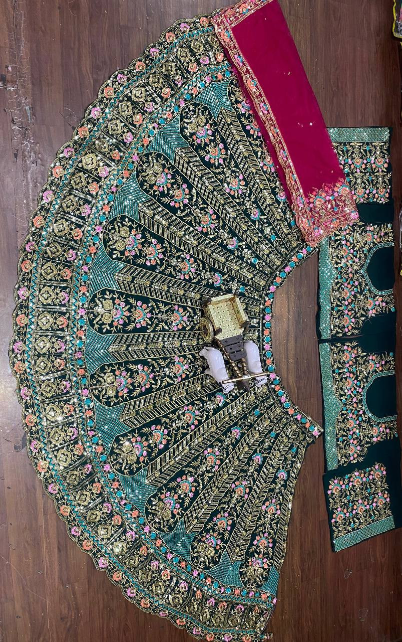 Step into elegance with our 4 Meter Flared Fox Georgette Sequins Embroidered Lehenga, crafted to make you shine at every occasion. Designed with premium faux georgette fabric, this semi-stitched lehenga exudes sophistication and comfort. The intricate sequin embroidery work adds a glamorous touch, while the Can-Can and canvas layers ensure a voluminous and regal silhouette.