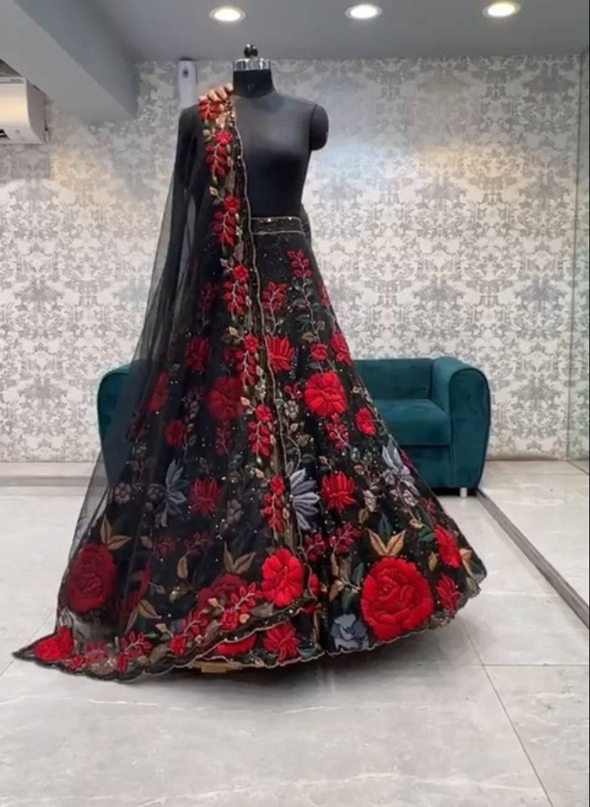 Launching Soft Mono Net Heavy Sequins Embroidered Lehenga Set
