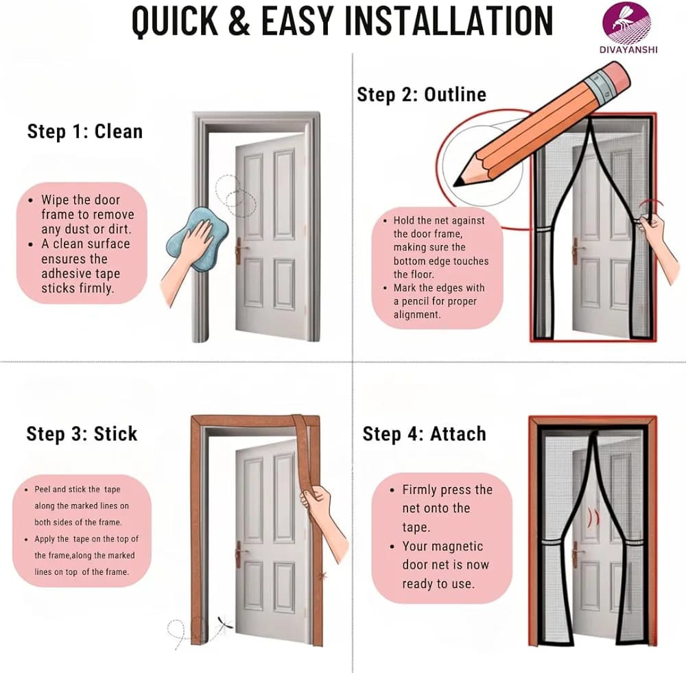 Net Curtain with Magnets Reinforced Polyester Mesh Auto Closing Insect Screen to Keep Mosquito Out,