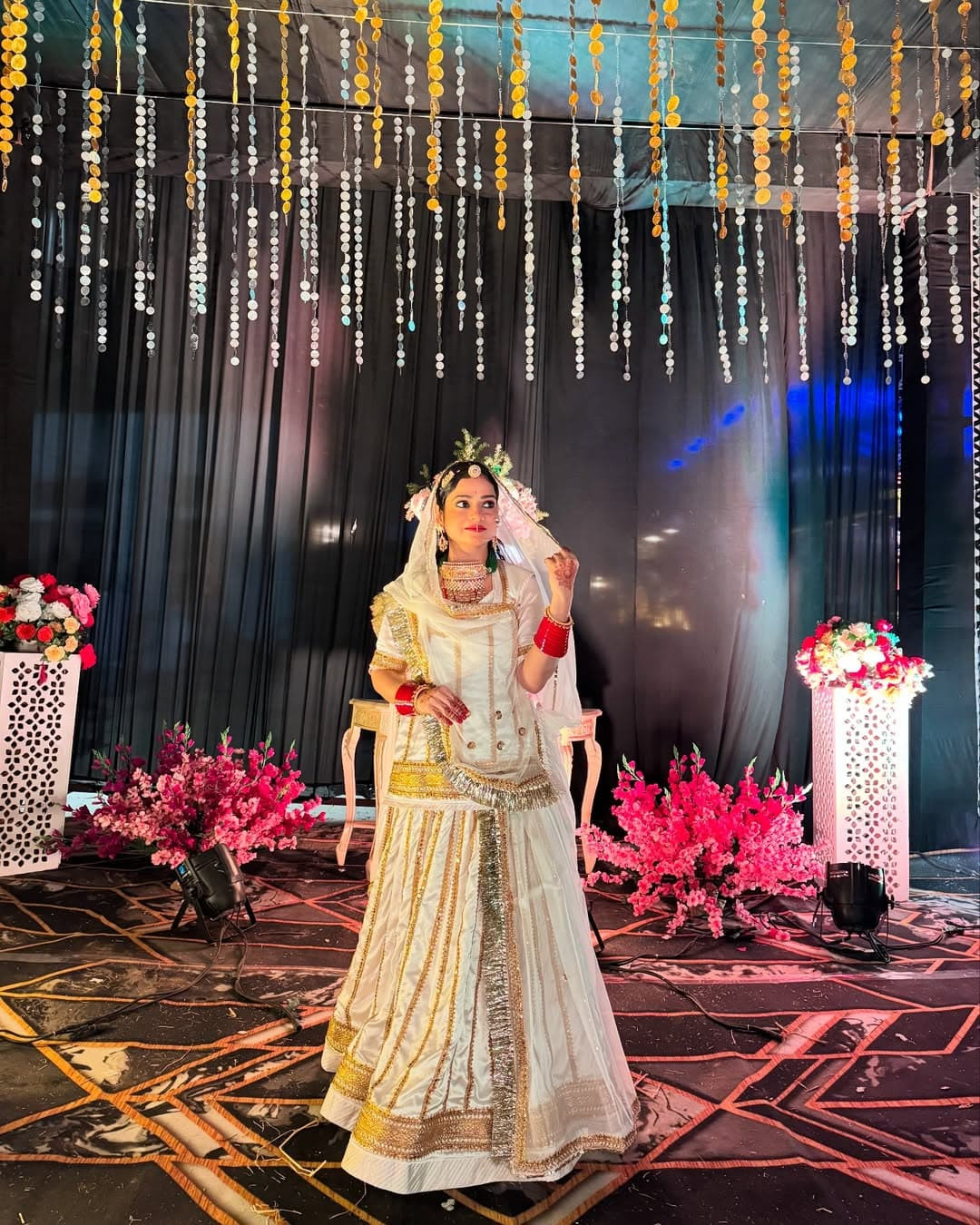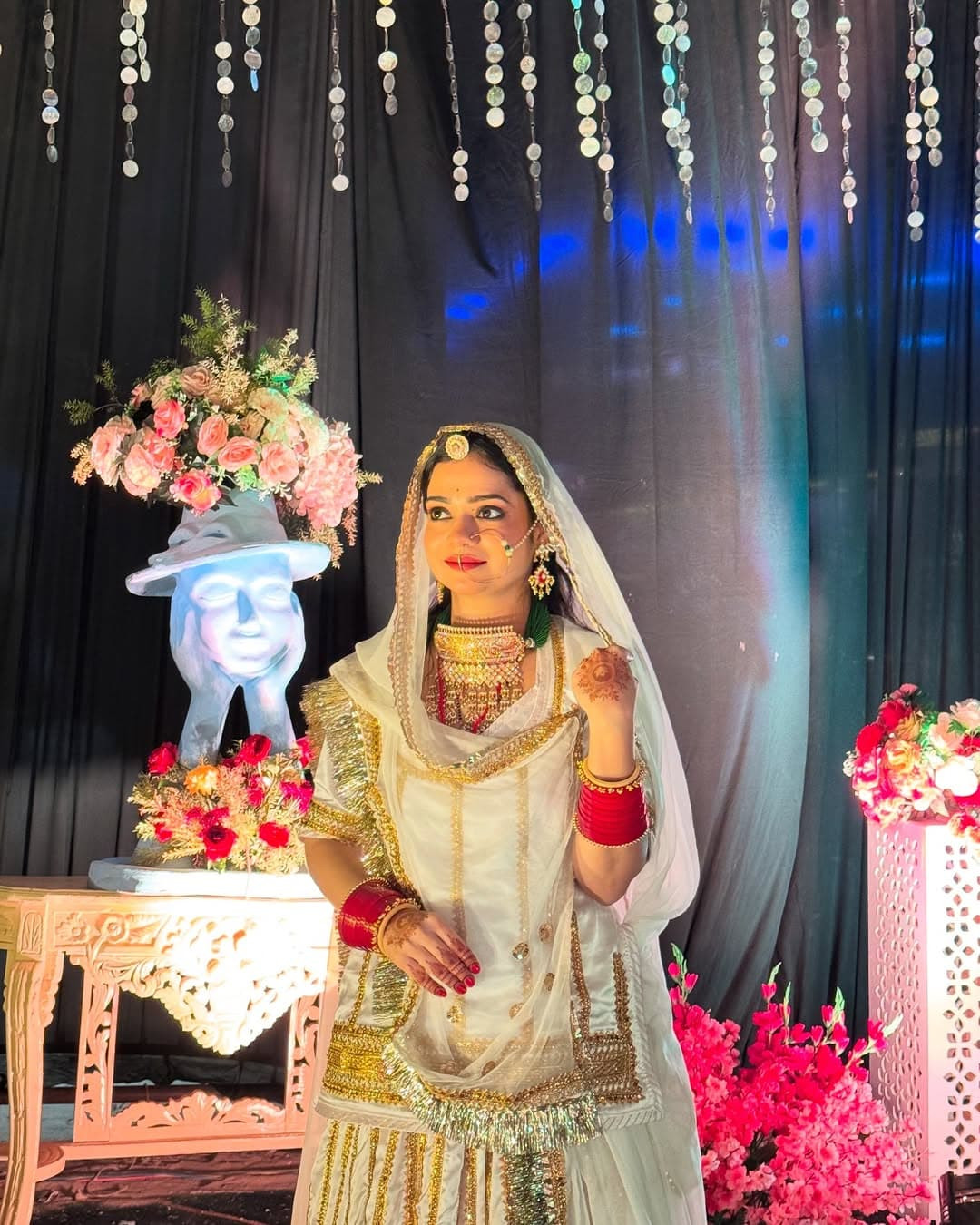 HEAVY BRANDED24 KALI FULL HEAVY GHEAR POSHAK SATAN SILK POSHAK SPECIAL WHITE GOLD WORK