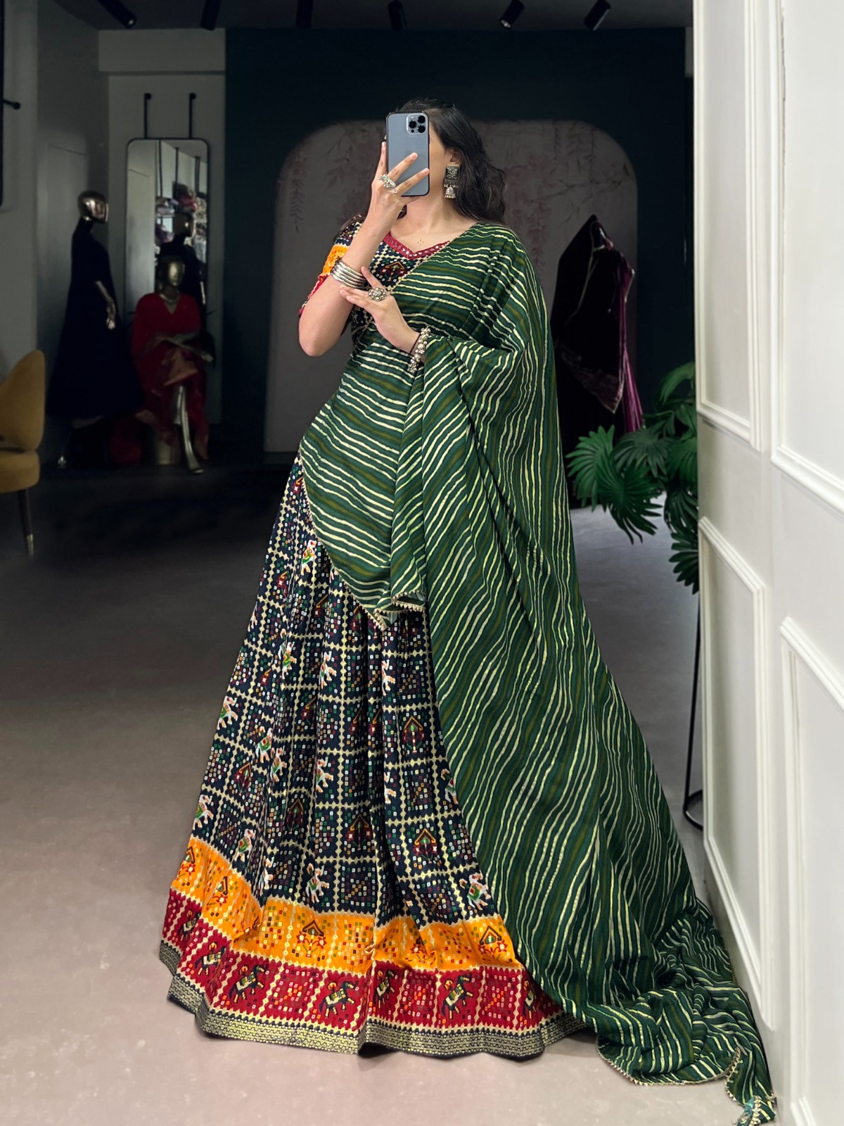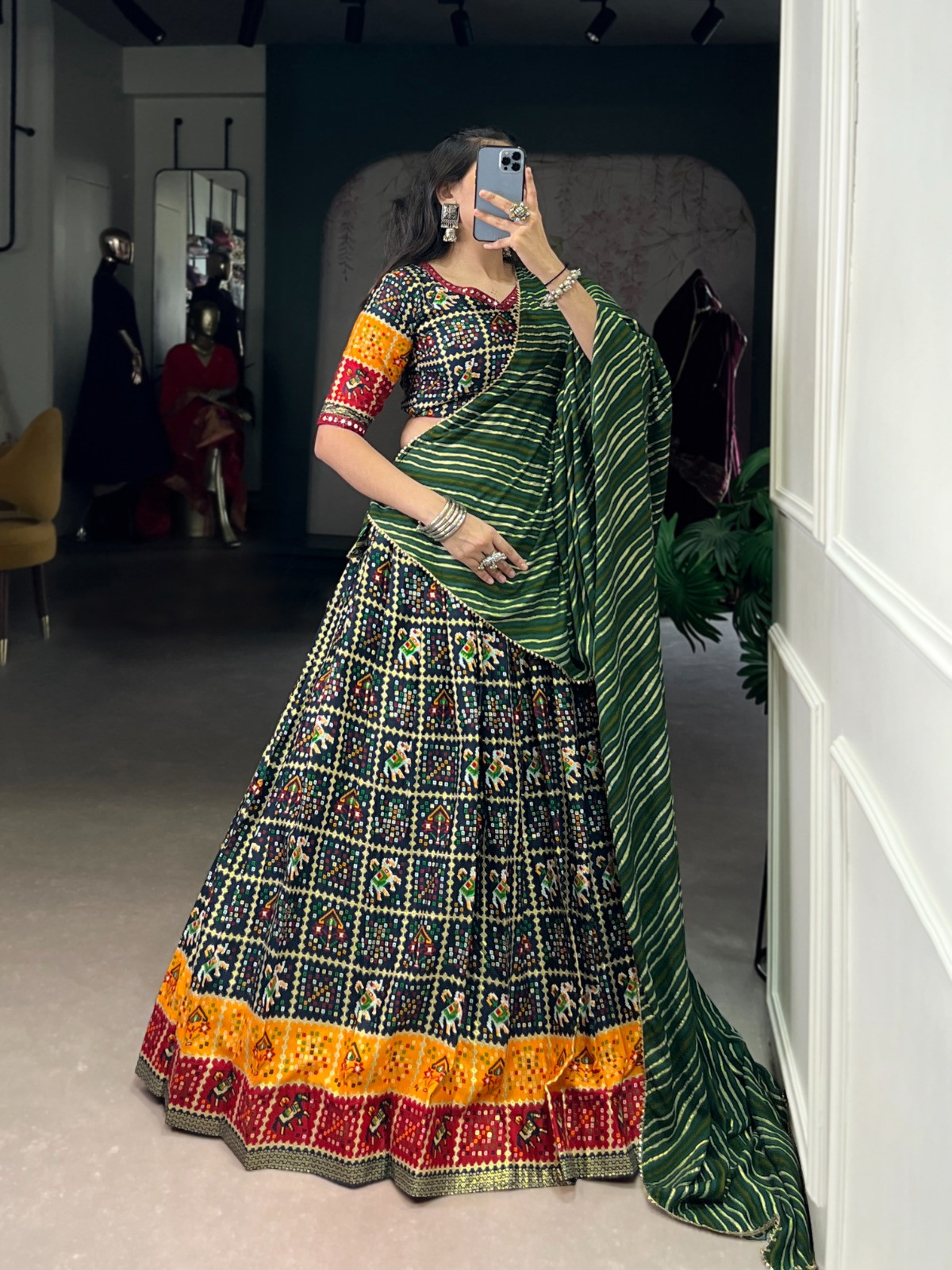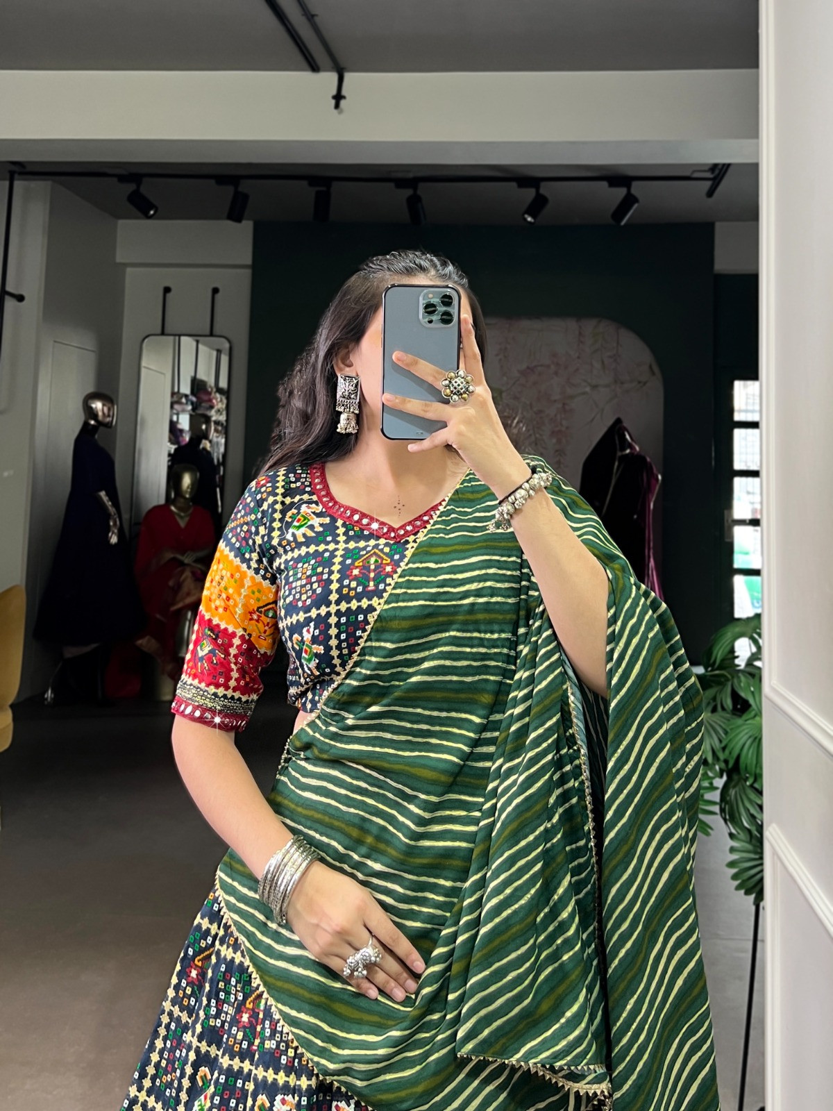Festival that highlight the colors of life with tradition of indian culture. Here is beautiful chaniyacholi of color combinations with foil print work. ?