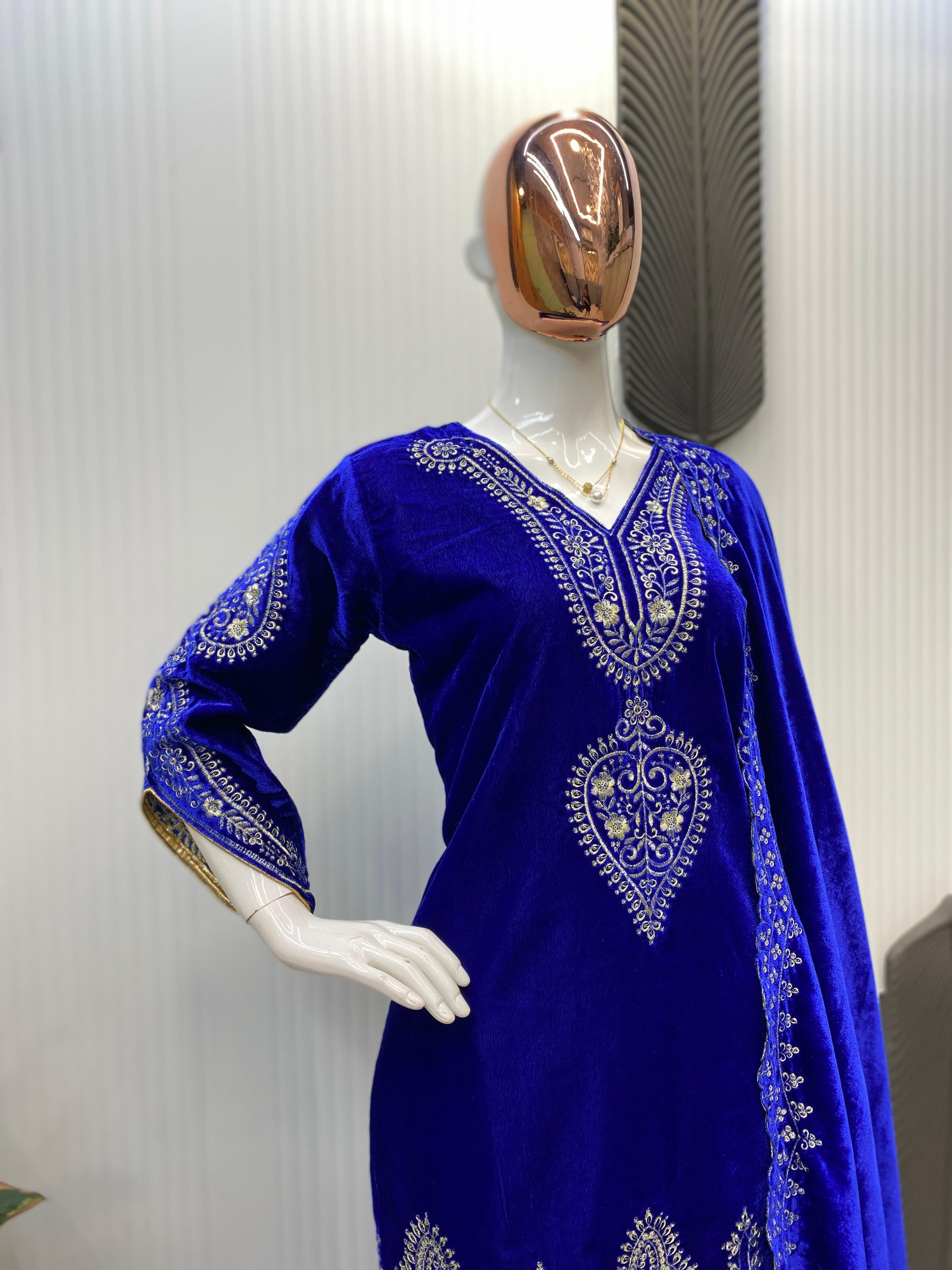 FOR THIS WINTER SEASON OUR NEW DESIGNER STYLE VELVET EMBROIDERY WORK SUIT PANT WITH DUPATT