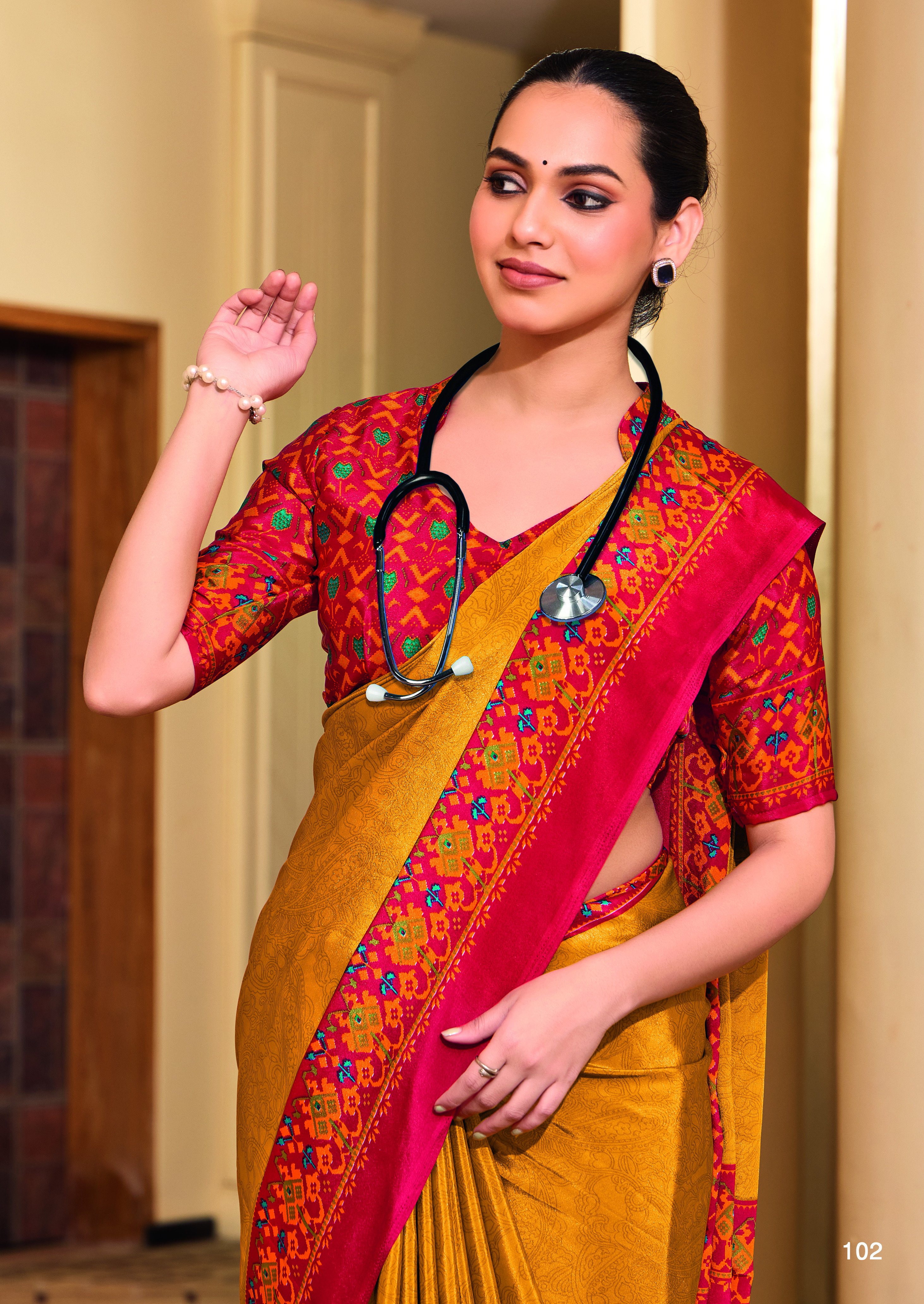 New beautiful Crepe Silk Fabric Uniform Official Wear saree -