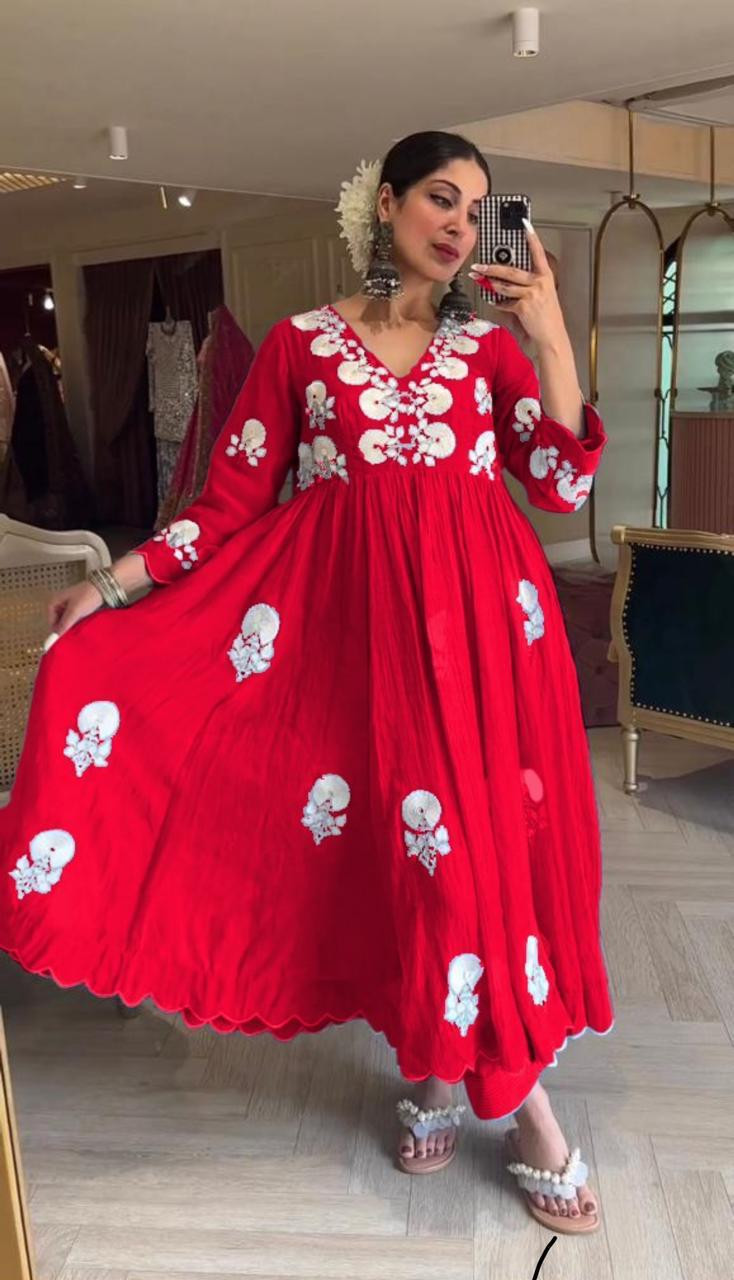 Gown Fabric: Pure Cotton with Heavy Embroidery & Mirror Handwork