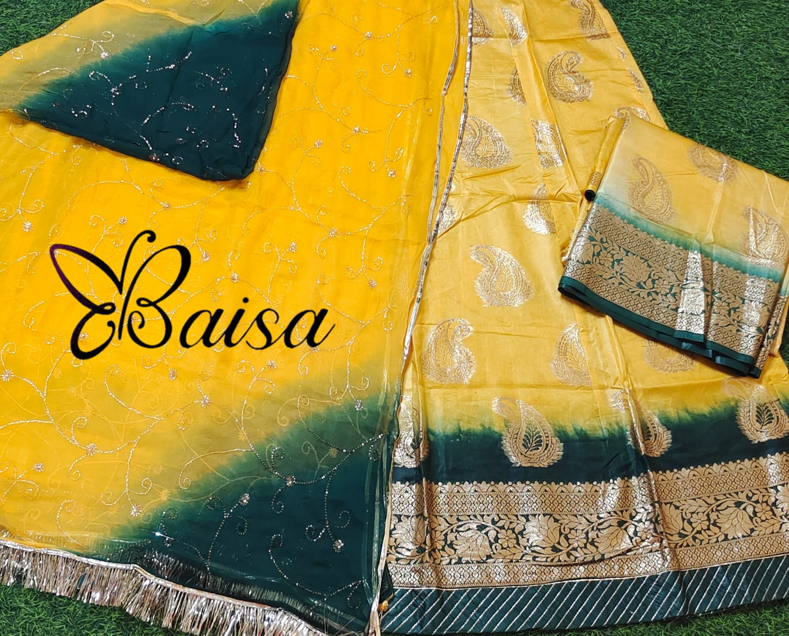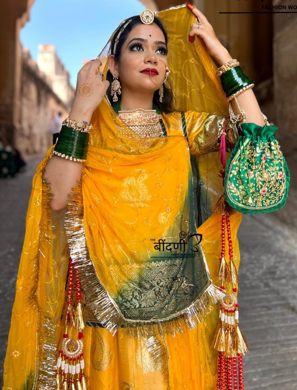 Sunny Elegance: Yellow Cotton Jacquard Poshak with Kerry Design(SEMI STICH )