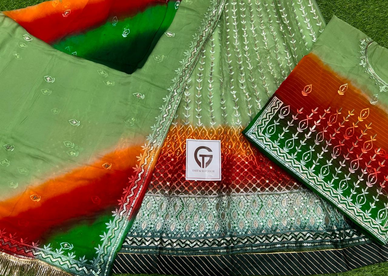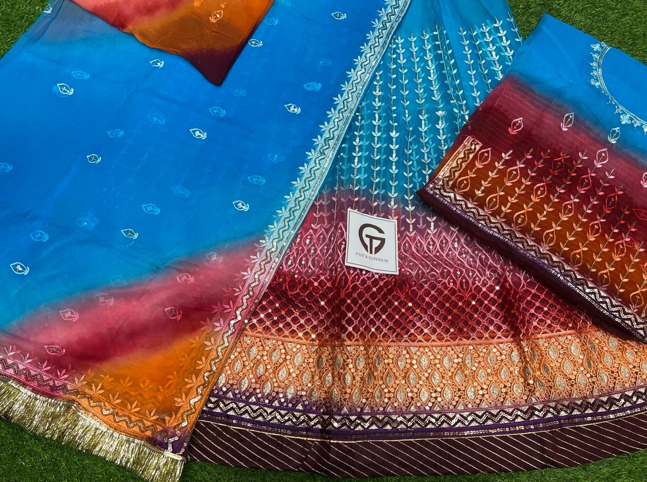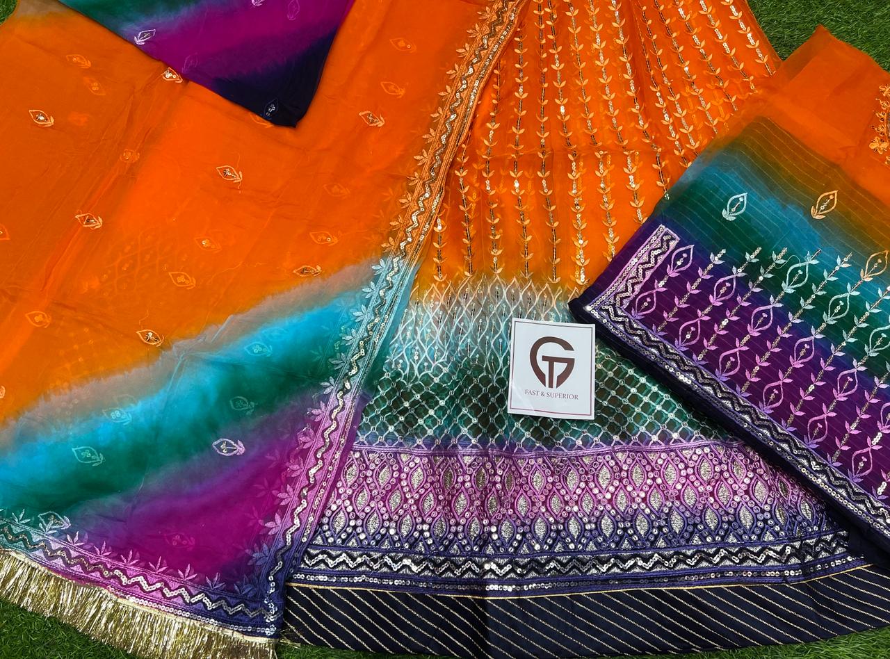 Odhna fabric 5D premium Hamrahi Pryor Gota kiran complete Enhancing the beauty of the outfit With Aster Aree Magi complete
