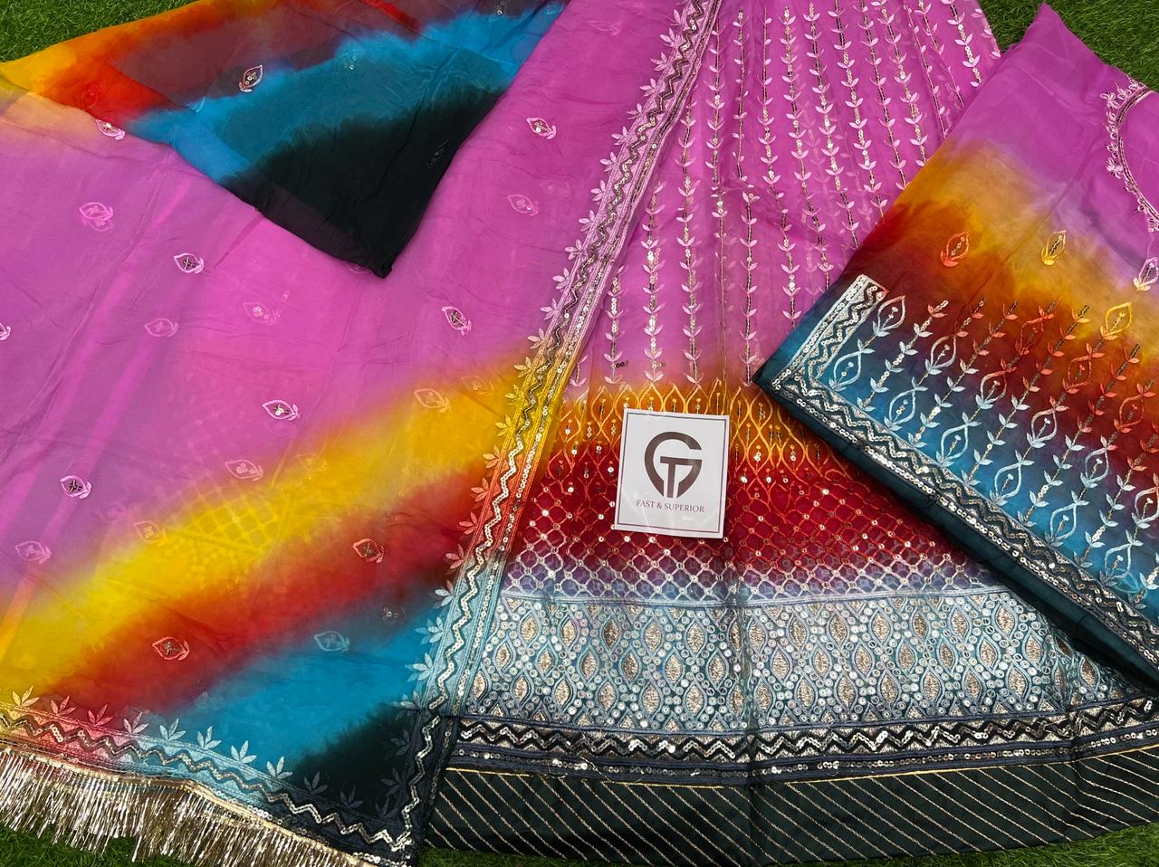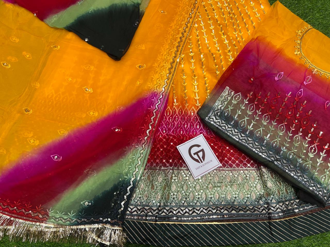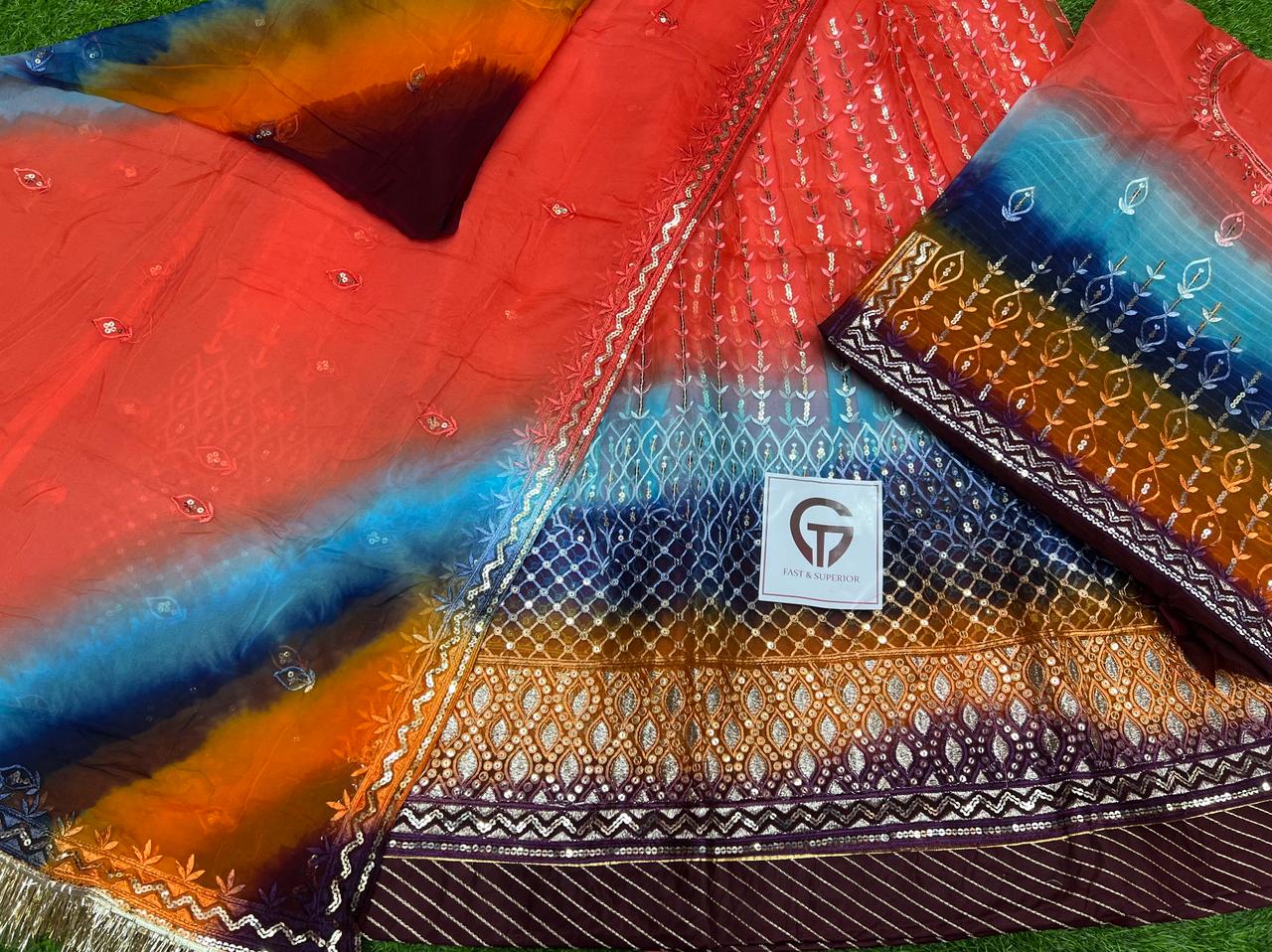 Odhna fabric 5D premium Hamrahi Pryor Gota kiran complete Enhancing the beauty of the outfit With Aster Aree Magi complete