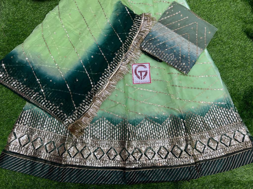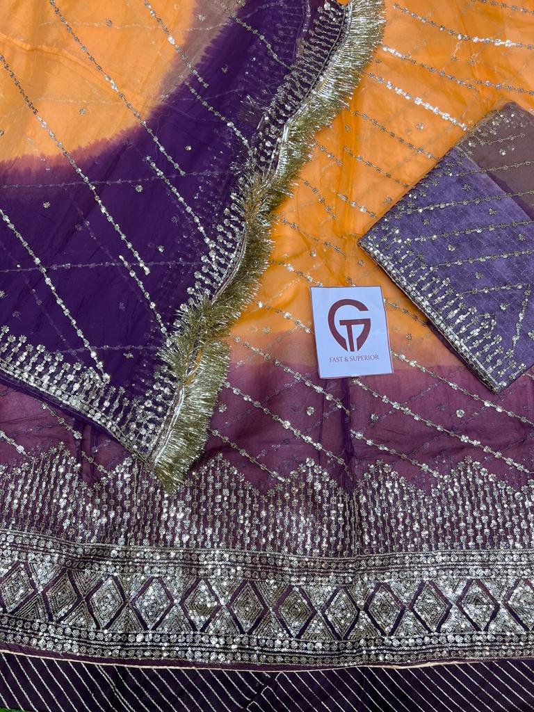 New Organza Poshak Duble Sadede Heavy Jall lehariya border work suit