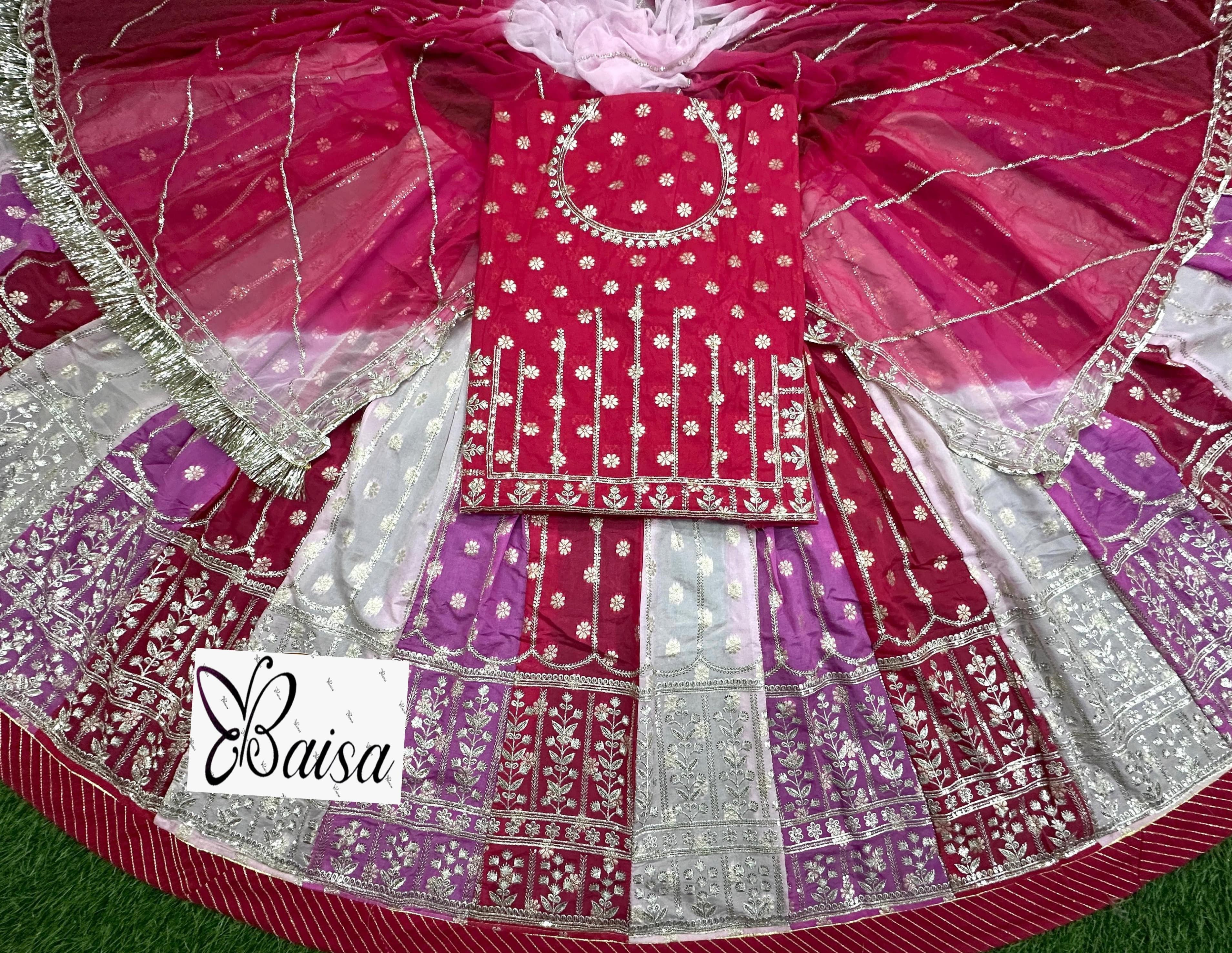 Multi colour Hamrai ODHANI with 4 side Embroidery border Jaal work & Gota Turi