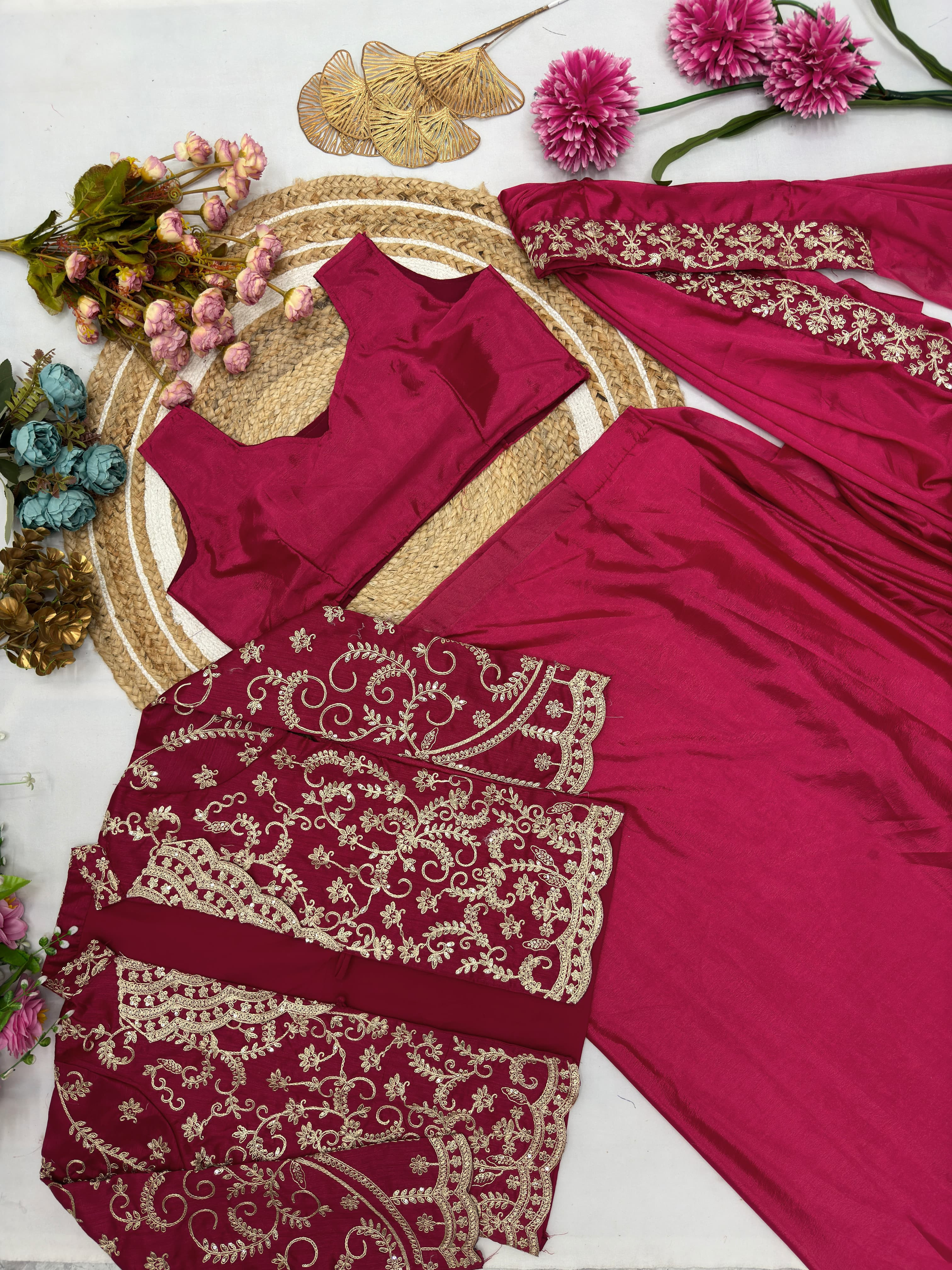 Saree Heavy Chinnon Silk Ready To Wear With Dupatta Attached
