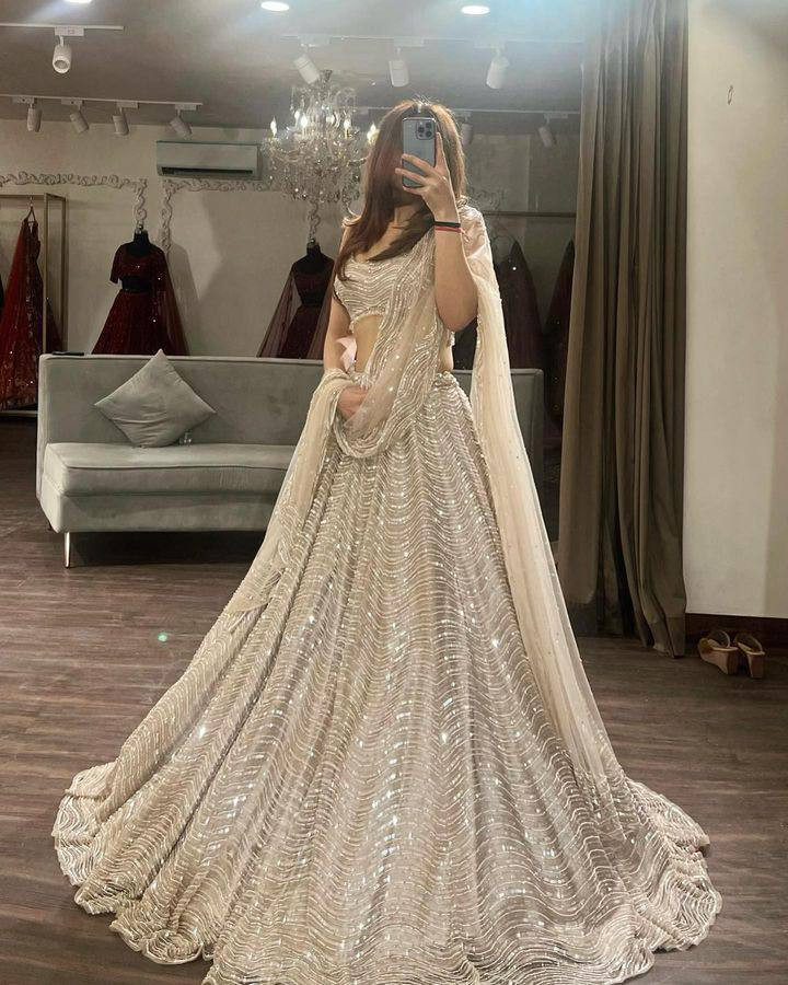 Make every occasion unforgettable with this stunning Organza Silk Sequins Work Lehenga Set.