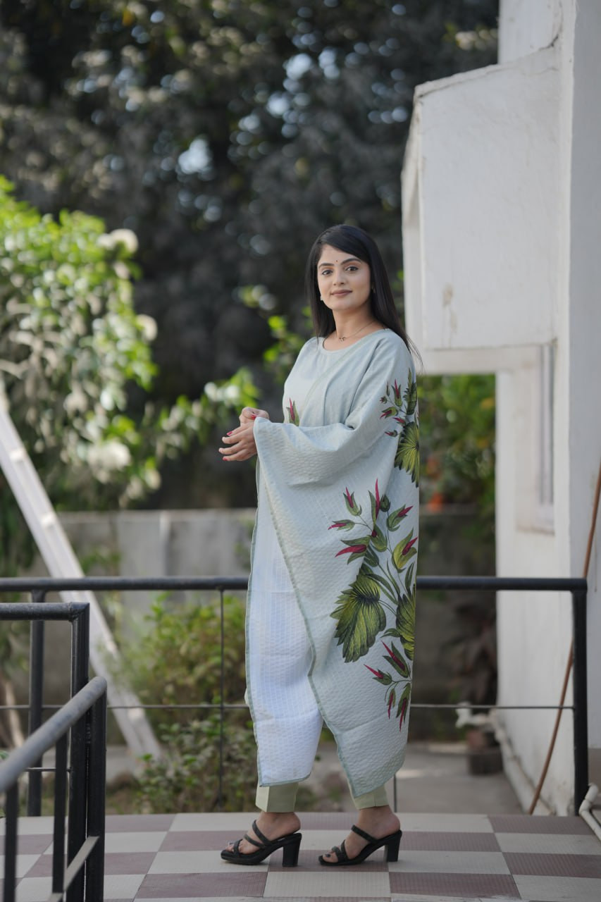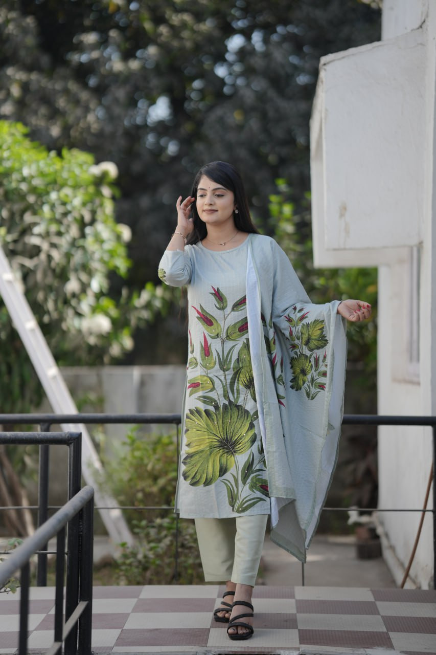 The set includes a lined top, matching bottom, and dupatta, making it a complete and ready-to-wear choice for effortless style. Experience the perfect blend of tradition and modern charm.