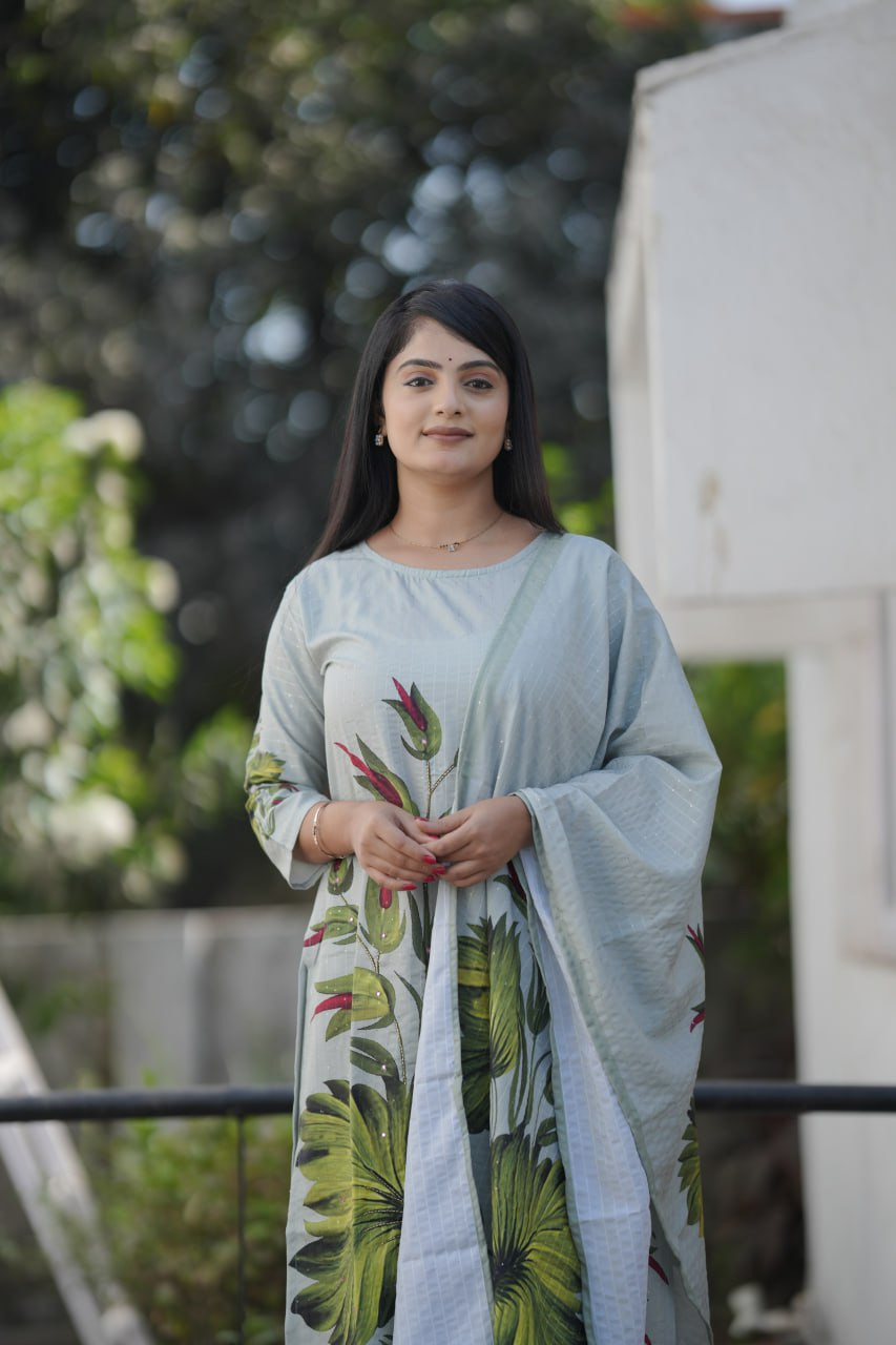 Pakistani Suit Digital Prints, Sequin Embroidery Lace Detailing 3 Piece Set -