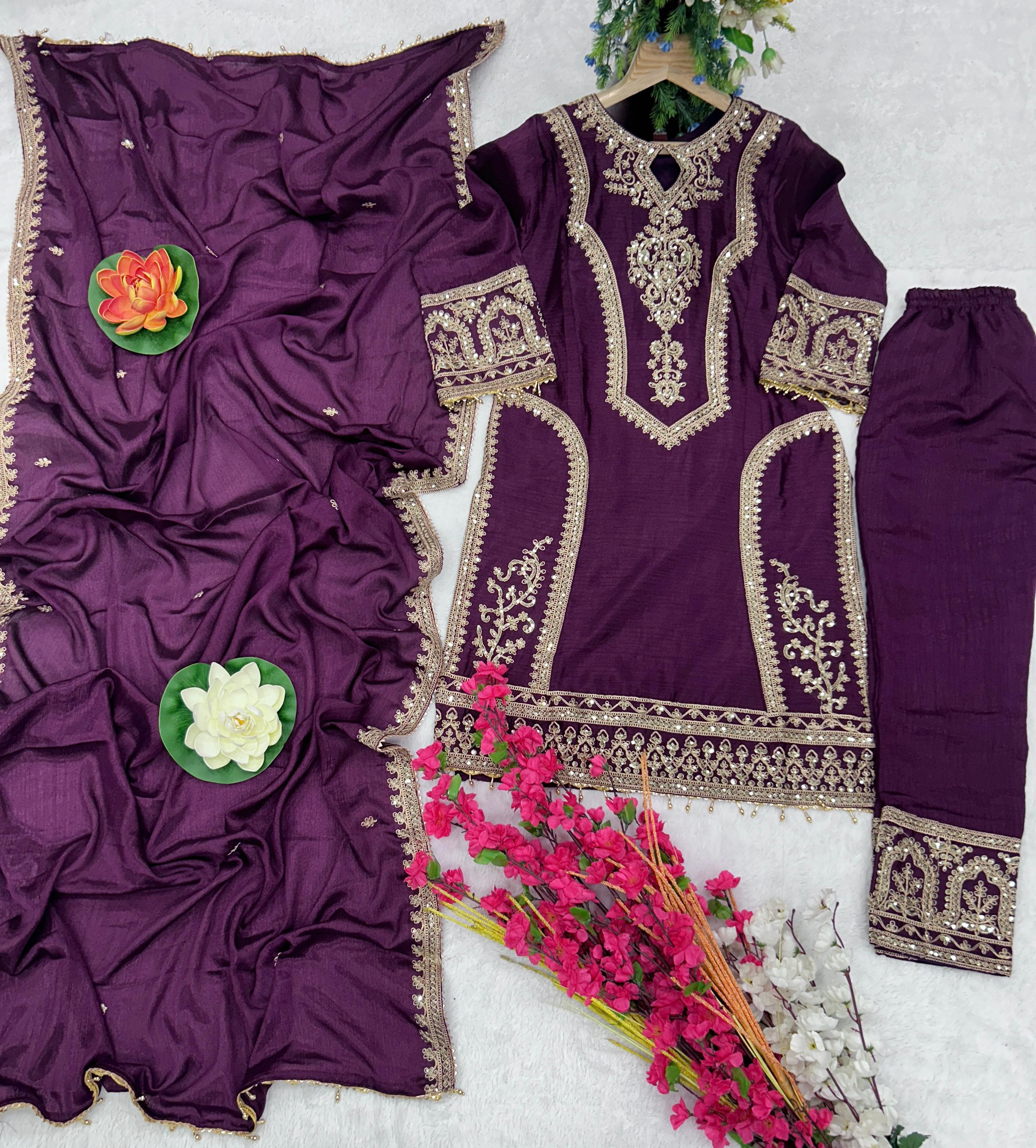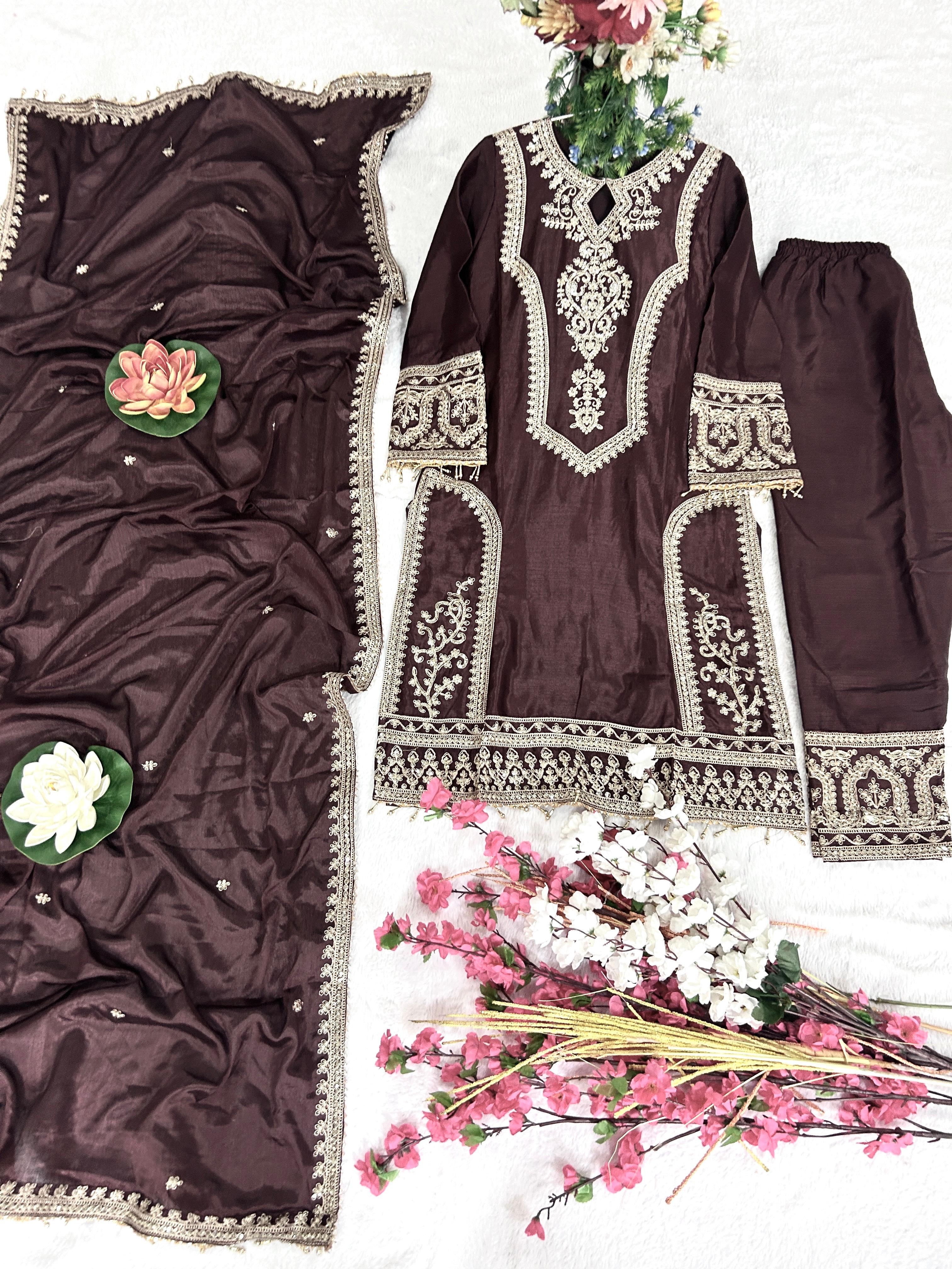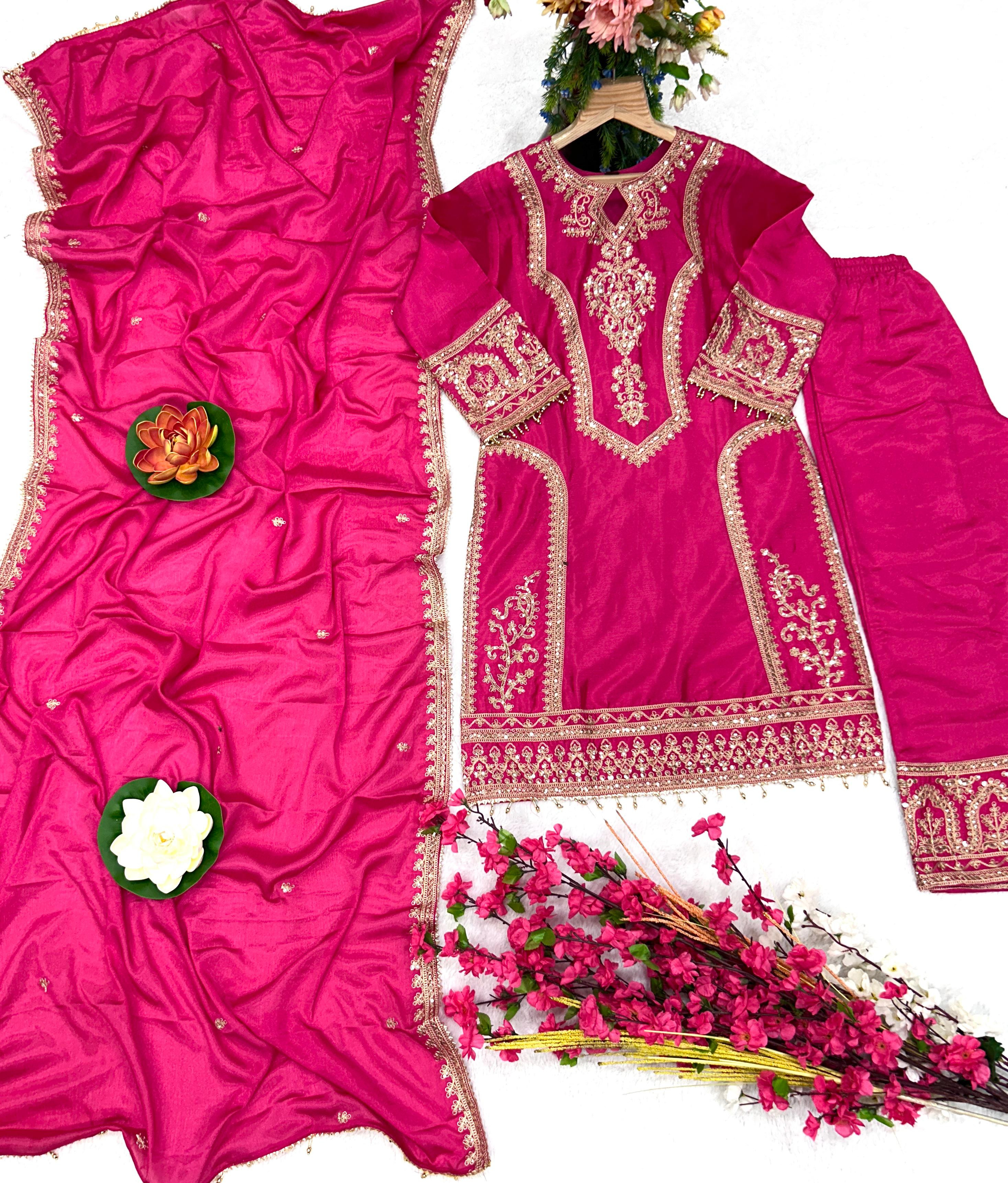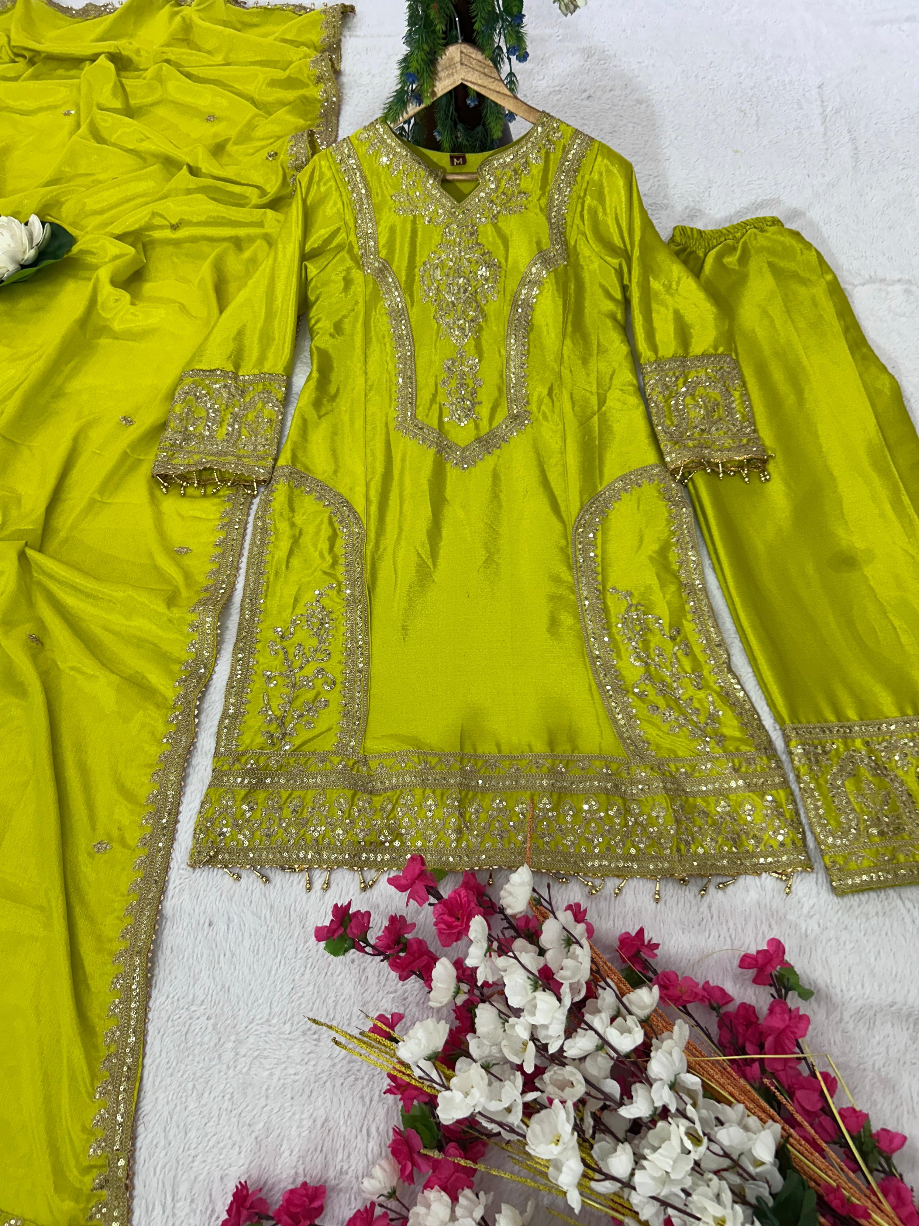 Kurti Fabric :- Pure Chinon Silk Fabric With Micro silk inner (Fully stitched)