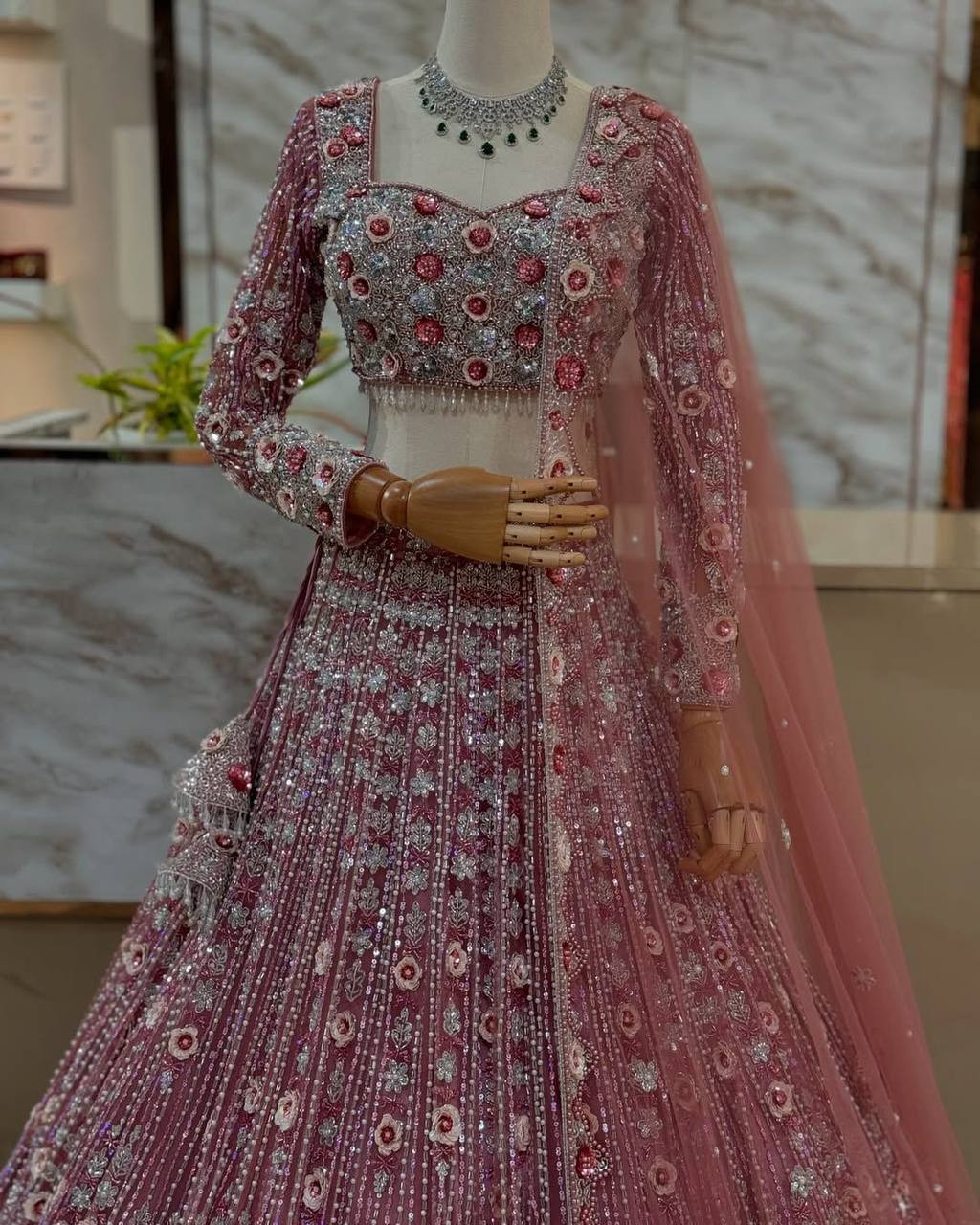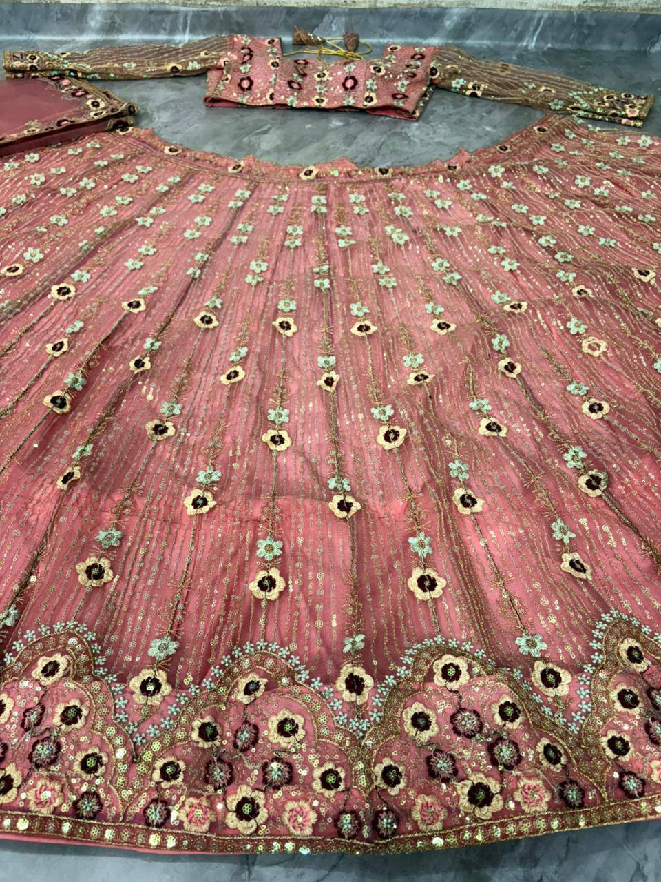 This 4-meter flared lehenga comes with exquisite sequins embroidery work, layered with Can-Can and Canvas for a graceful and voluminous look. Ideal for weddings, receptions, sangeet nights, and festive occasions — this ensemble is sure to make you shine effortlessly.