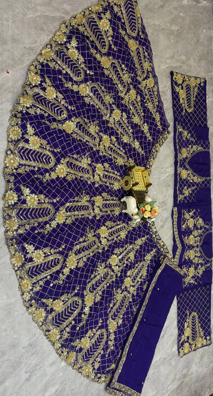 This exquisite 4-meter flared lehenga features intricate Coding Sequins Work, enhanced with Can-Can and Canvas layers for a voluminous, royal look.
