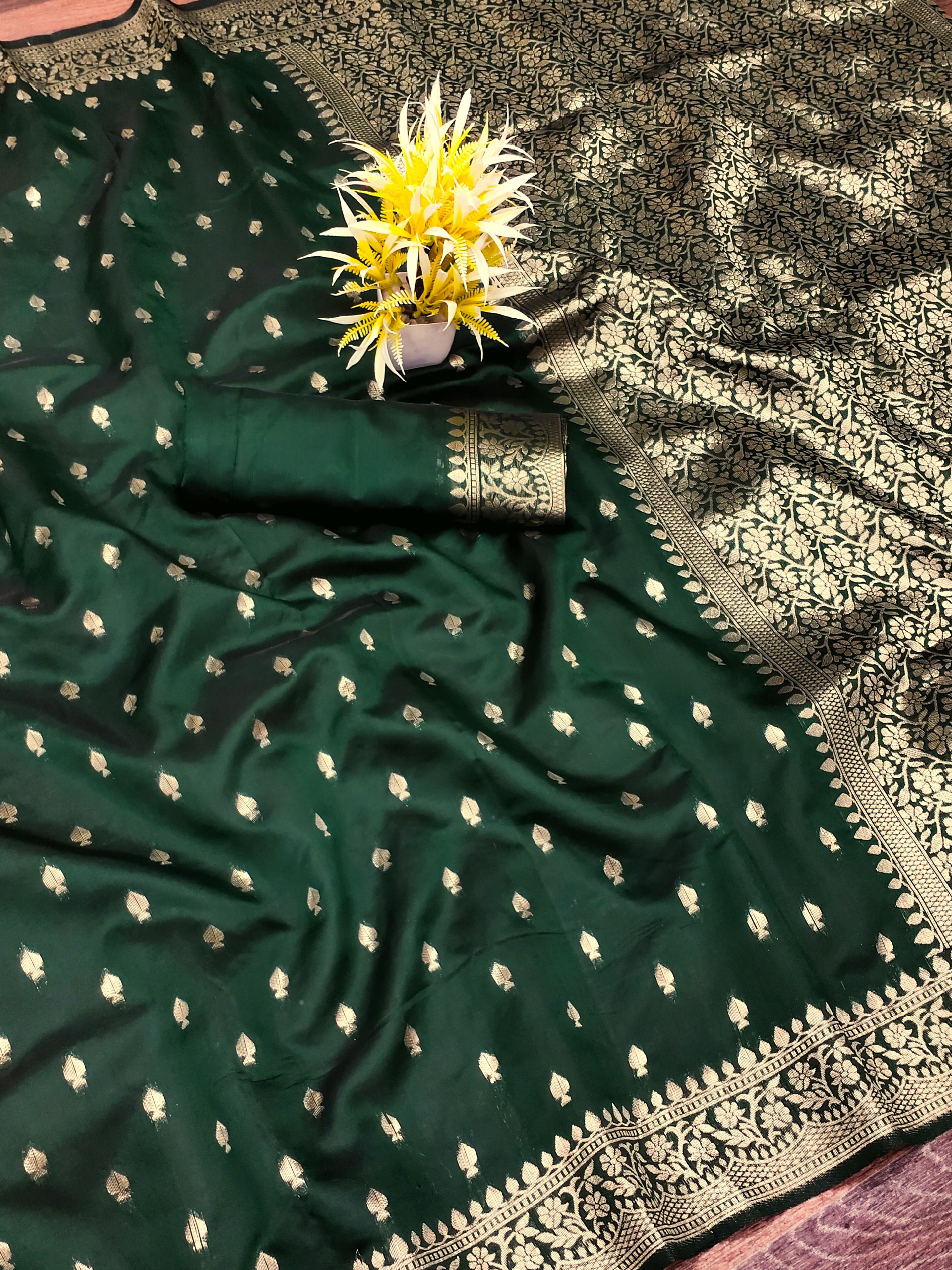 Elevate your ethnic wardrobe with this Premium Banarasi Jacquard Saree, crafted with elegance and traditional charm.