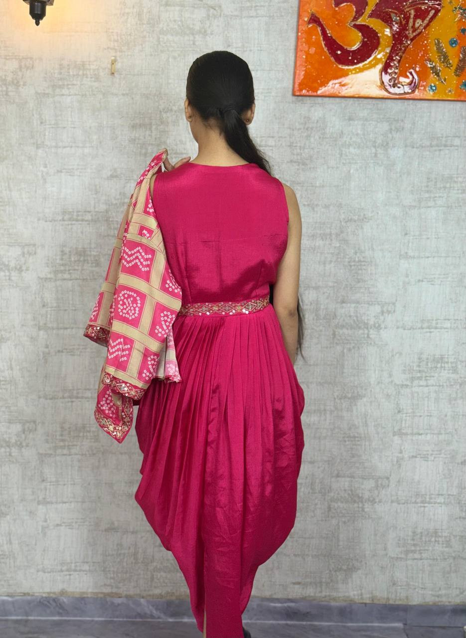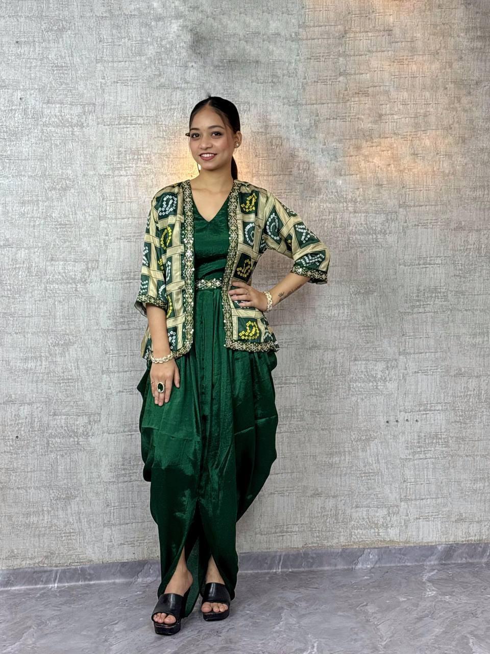 Step into elegance with our Premium Quality Chinon Silk Indo-Western Dhoti Dress, crafted for the modern woman who values both glamour and comfort.
