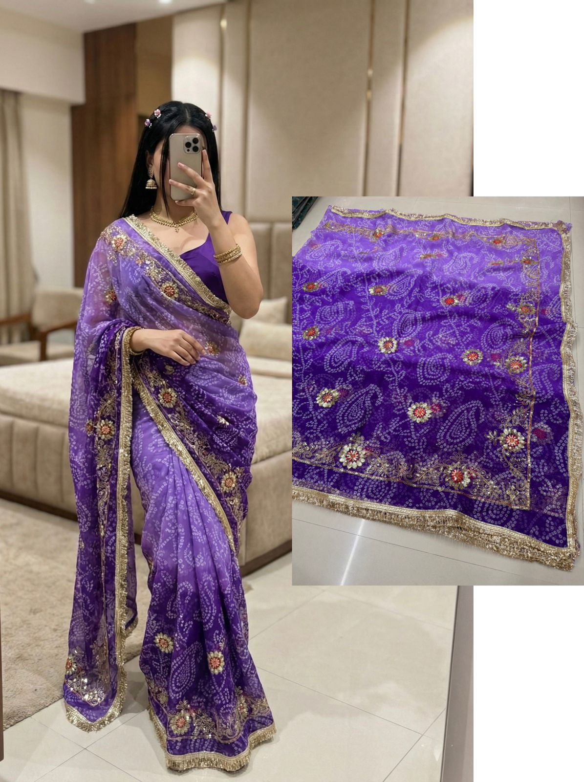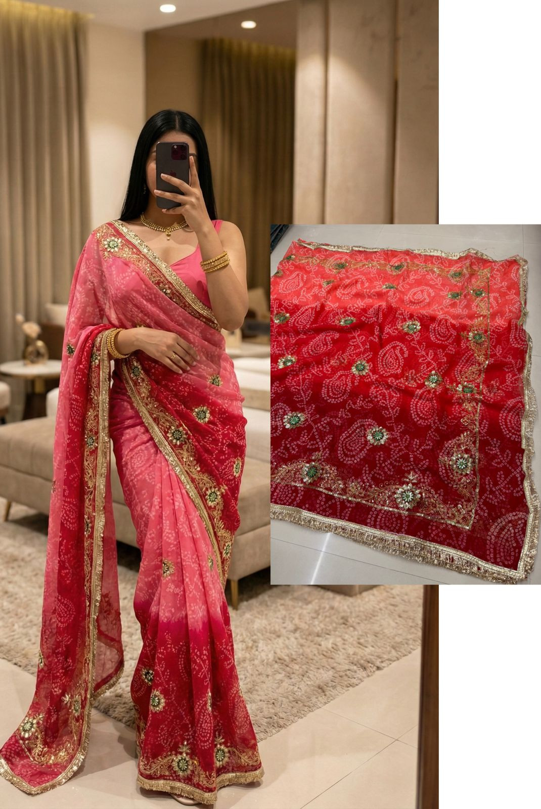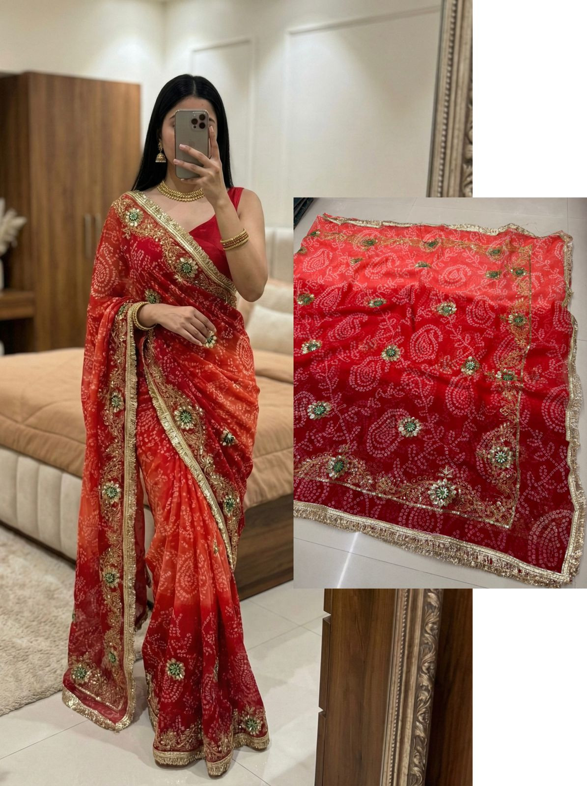Premium Royal Georgette Bhandej Saree