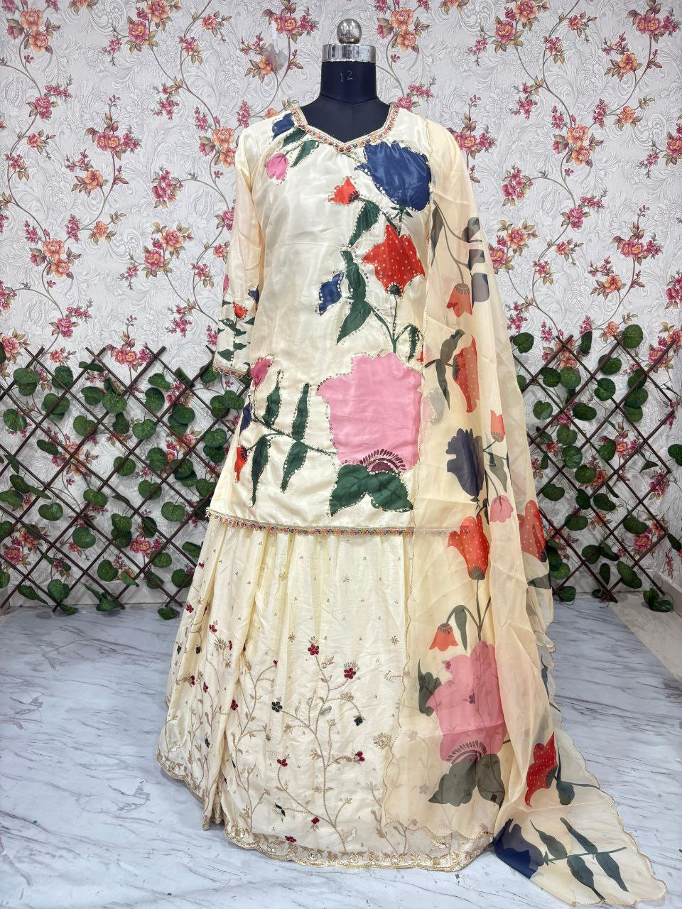 The outfit is paired with a graceful Taby Silk dupatta featuring beautiful prints and border work that completes the traditional look. This fully stitched lehenga set is designed for comfort and style, making it perfect for weddings, festivals, parties and special occasions.