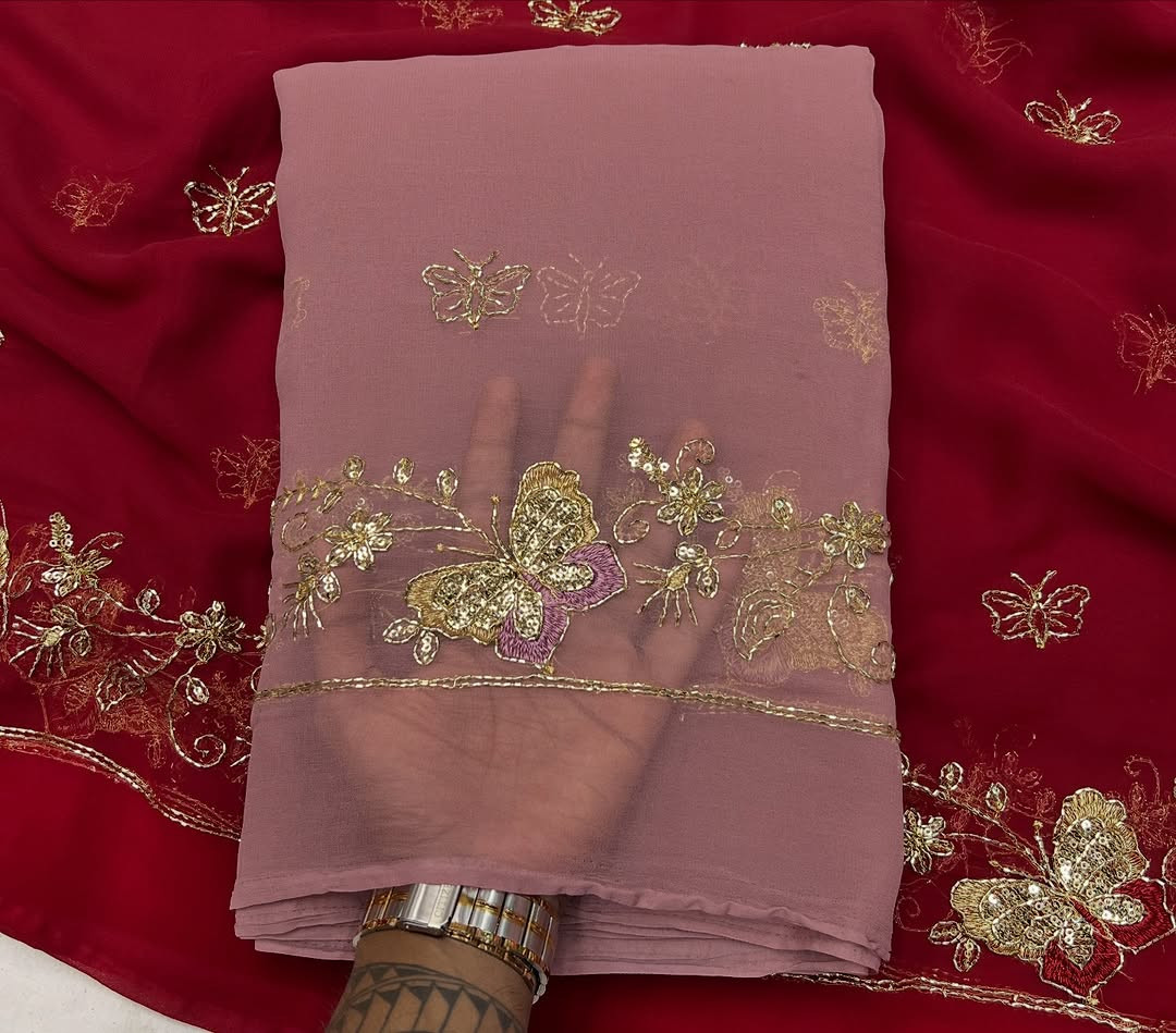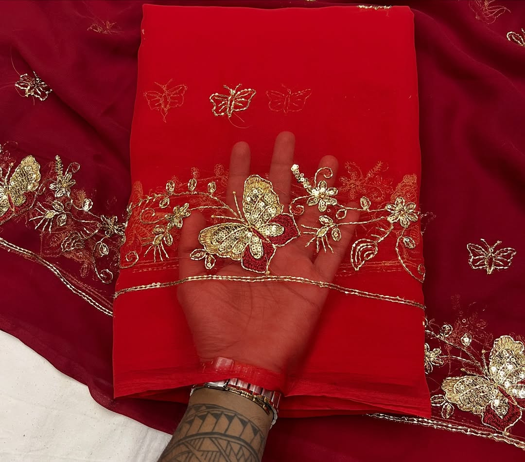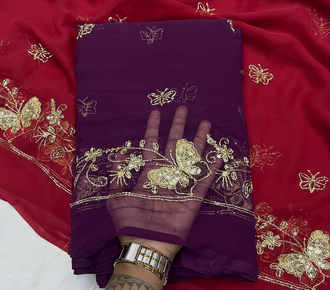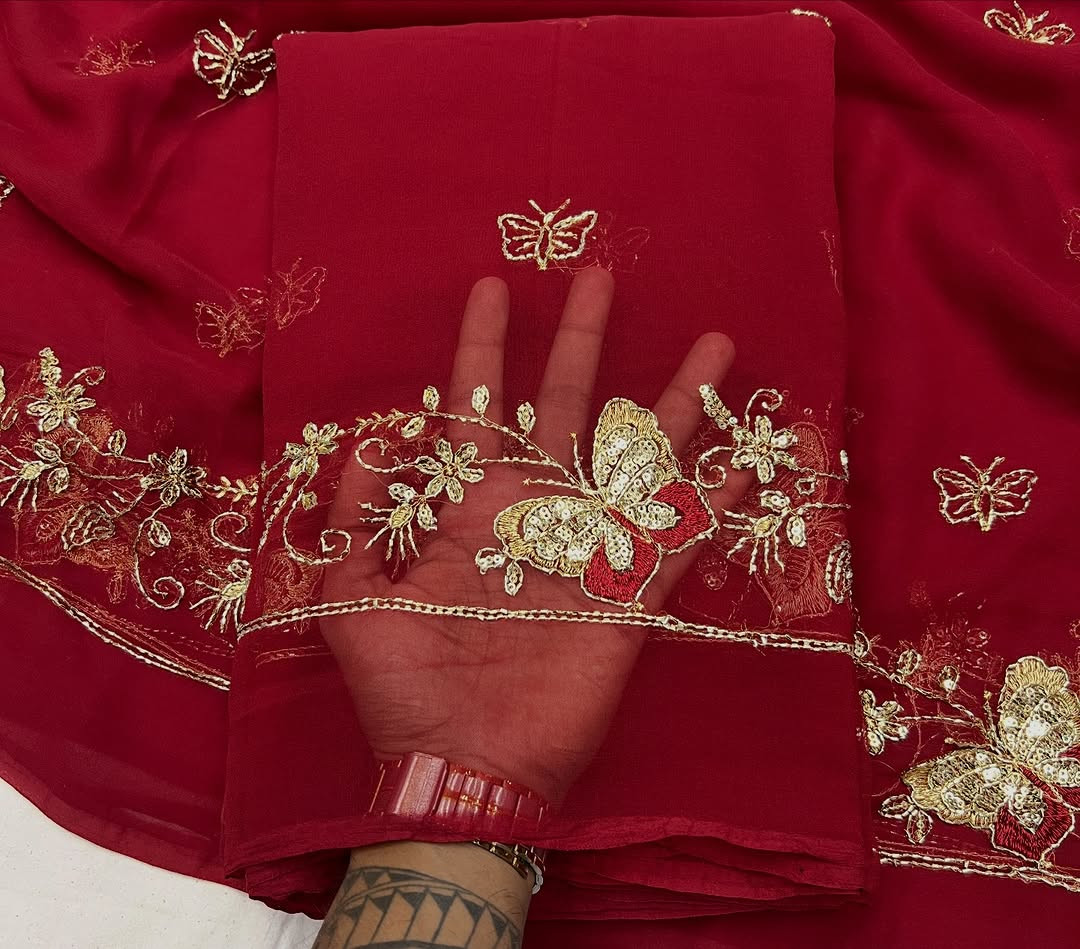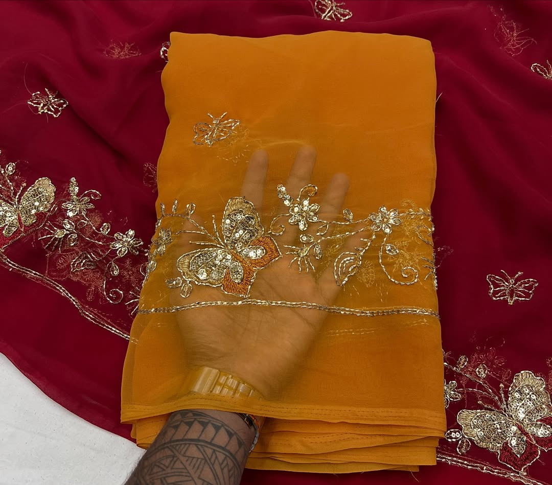 Experience timeless royal elegance with this Premium Rajwadi Style Saree, crafted from Original Thakurji Georgette Fabric. Designed for women who love heritage fashion, this saree features traditional Bhugli handwork that adds rich texture and authentic Rajwadi charm.