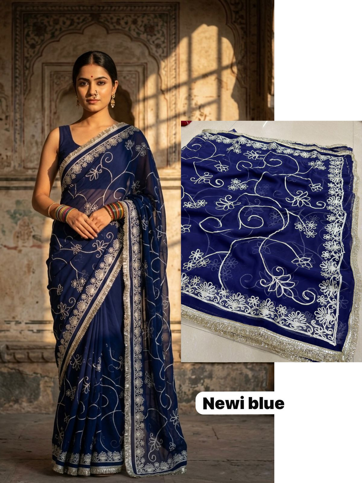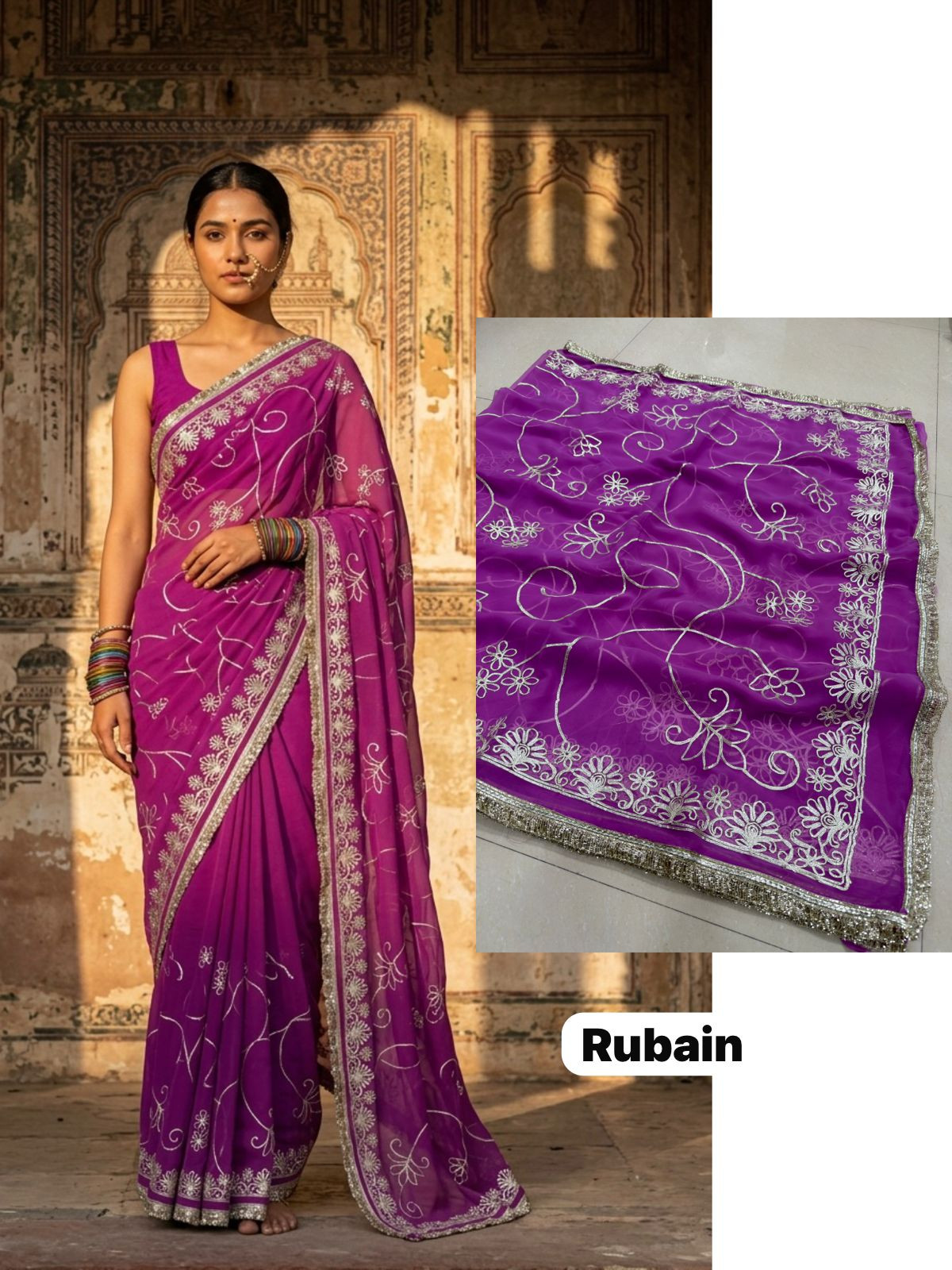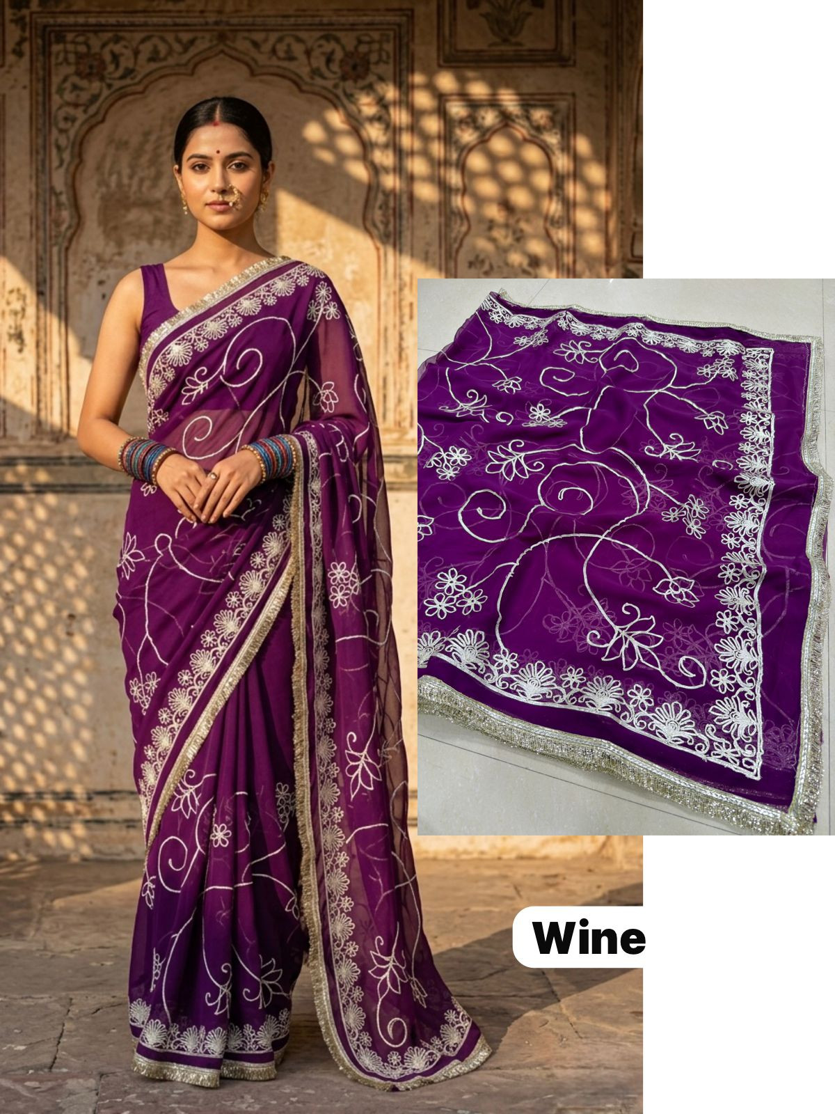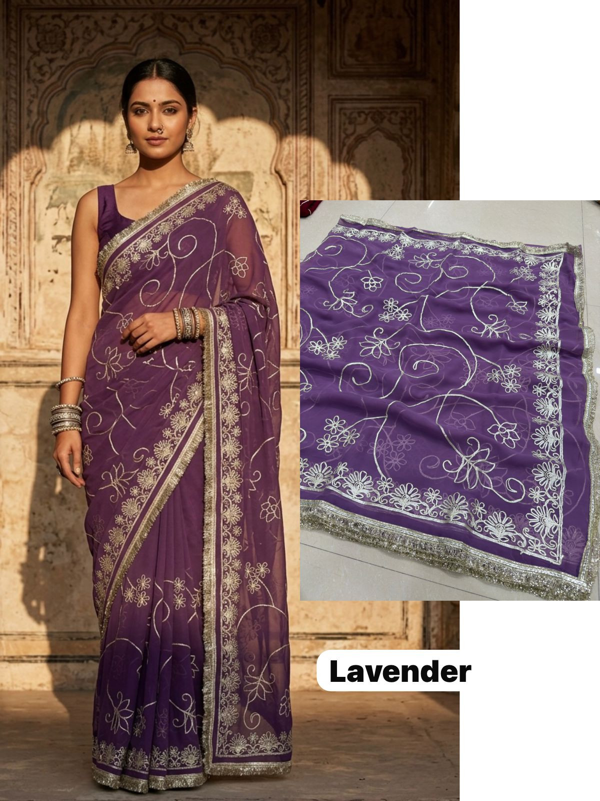 Indulge in the opulent charm of the Premium Royal Georgette Darbari Saree, a masterpiece crafted from an exquisite Indian silk blend. This saree drapes beautifully, offering a luxurious feel against your skin that speaks volumes of its premium quality. The rich georgette fabric, interwoven with fine silk threads, creates a subtle sheen that catches the light with every movement, making you the undeniable center of attention at any event. Its intricate Darbari-inspired motifs, meticulously woven, add a touch of regal heritage and timeless elegance, ensuring you stand out with sophisticated grace.