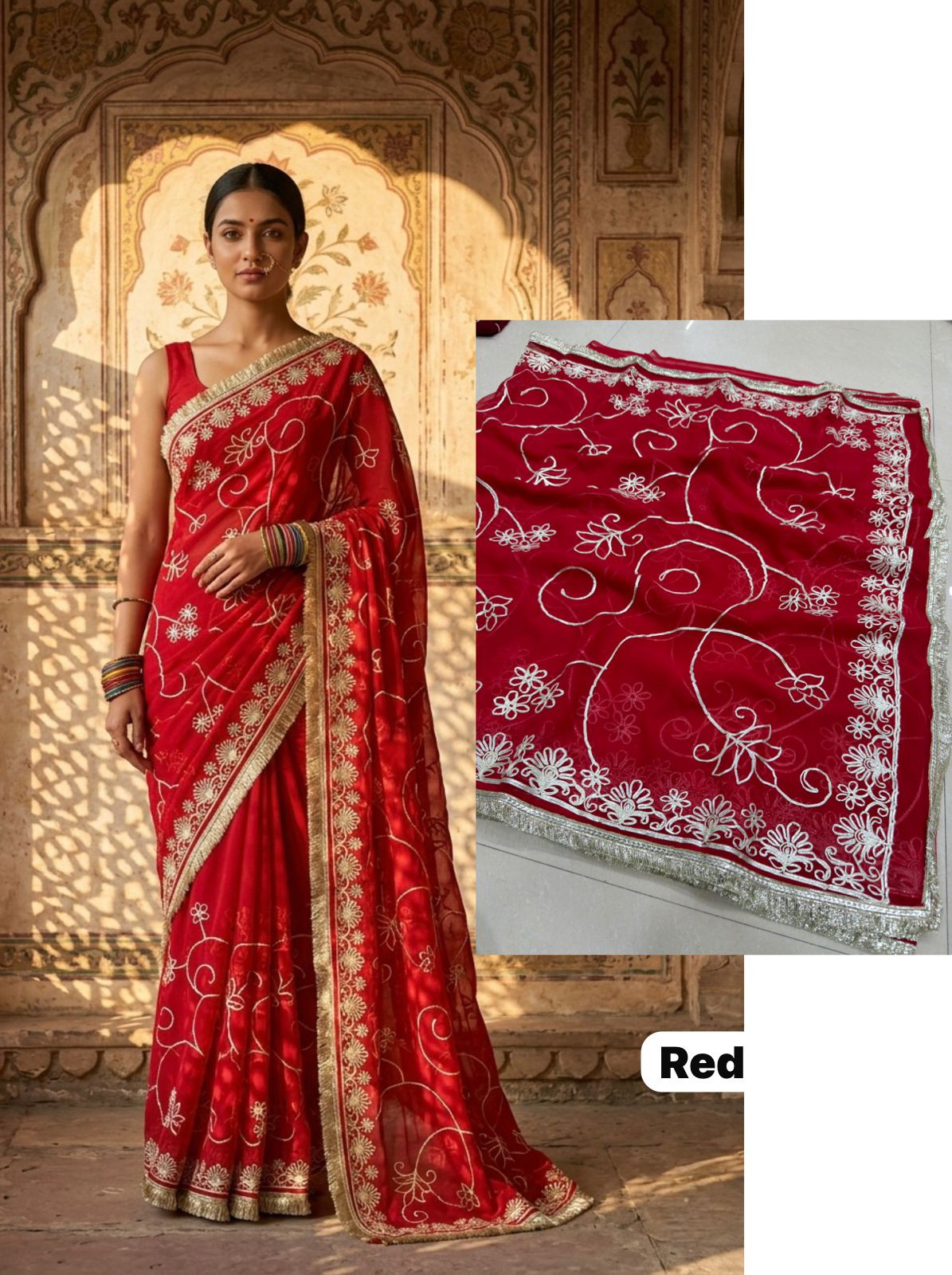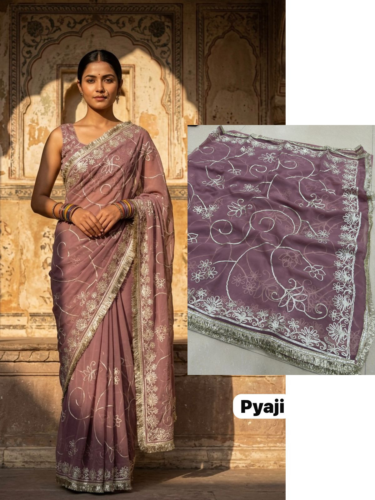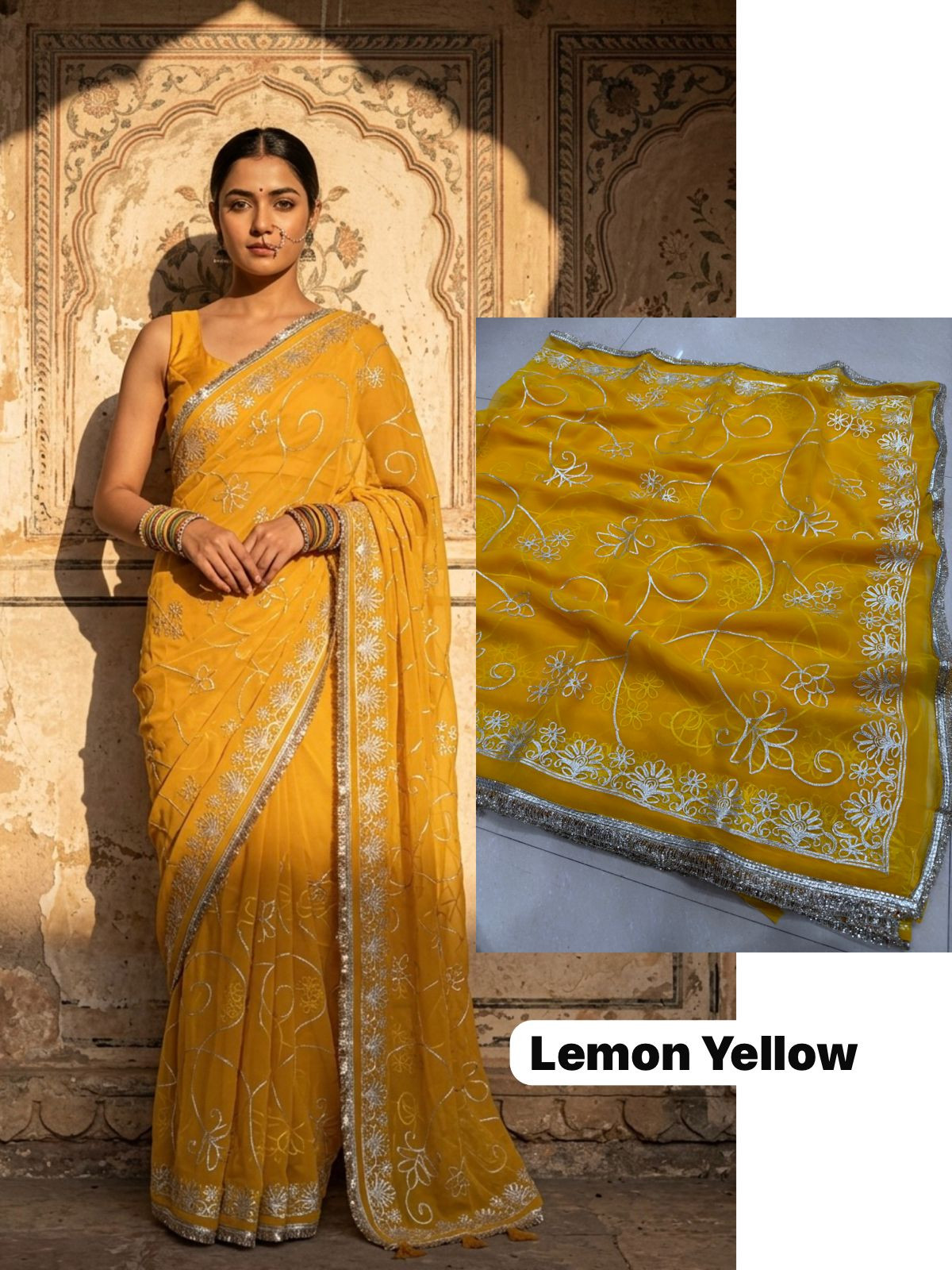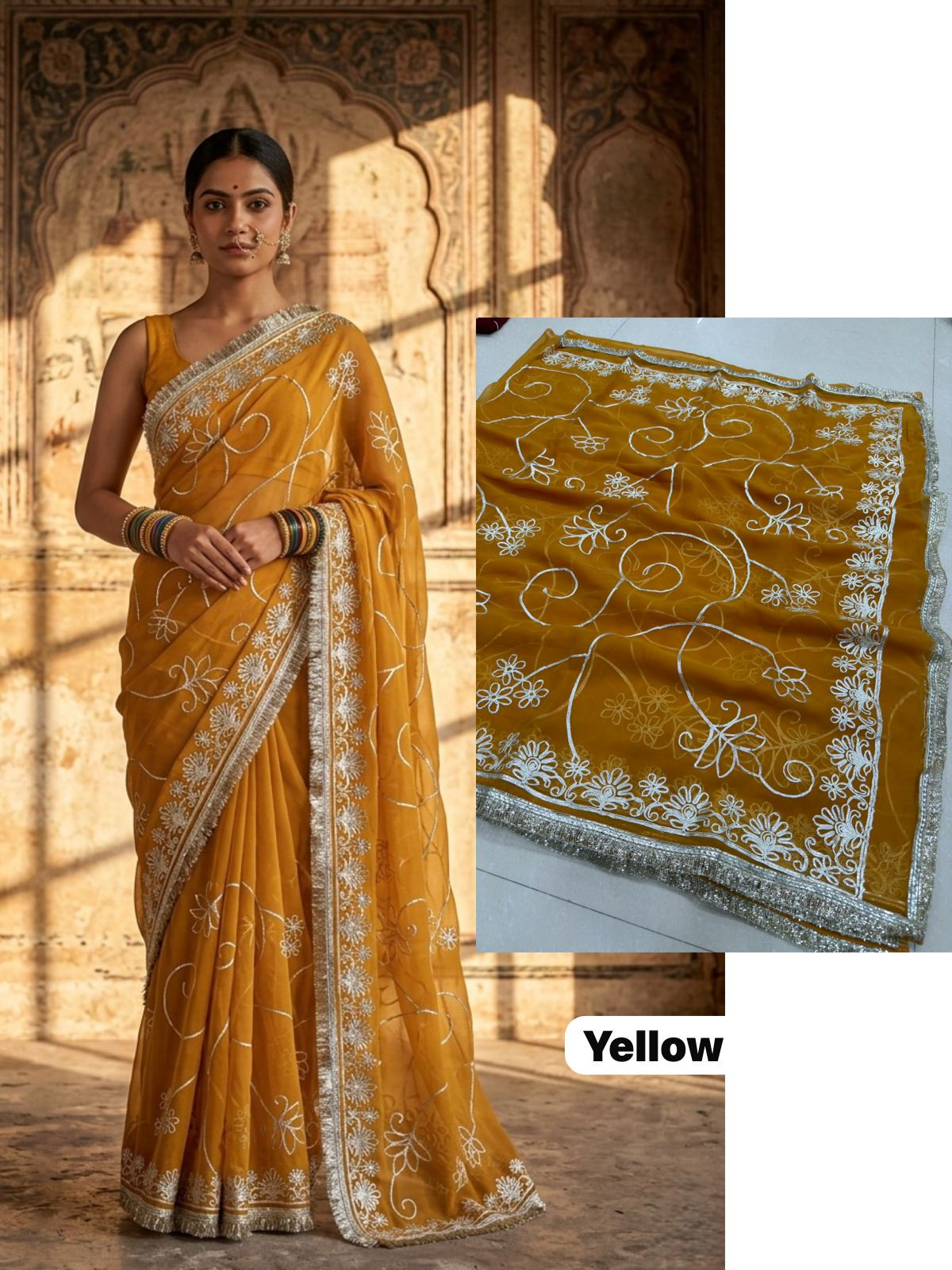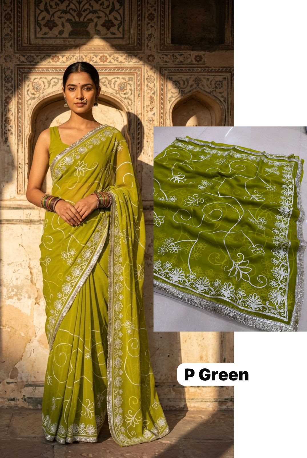 Indulge in the opulent charm of the Premium Royal Georgette Darbari Saree, a masterpiece crafted from an exquisite Indian silk blend. This saree drapes beautifully, offering a luxurious feel against your skin that speaks volumes of its premium quality. The rich georgette fabric, interwoven with fine silk threads, creates a subtle sheen that catches the light with every movement, making you the undeniable center of attention at any event. Its intricate Darbari-inspired motifs, meticulously woven, add a touch of regal heritage and timeless elegance, ensuring you stand out with sophisticated grace.