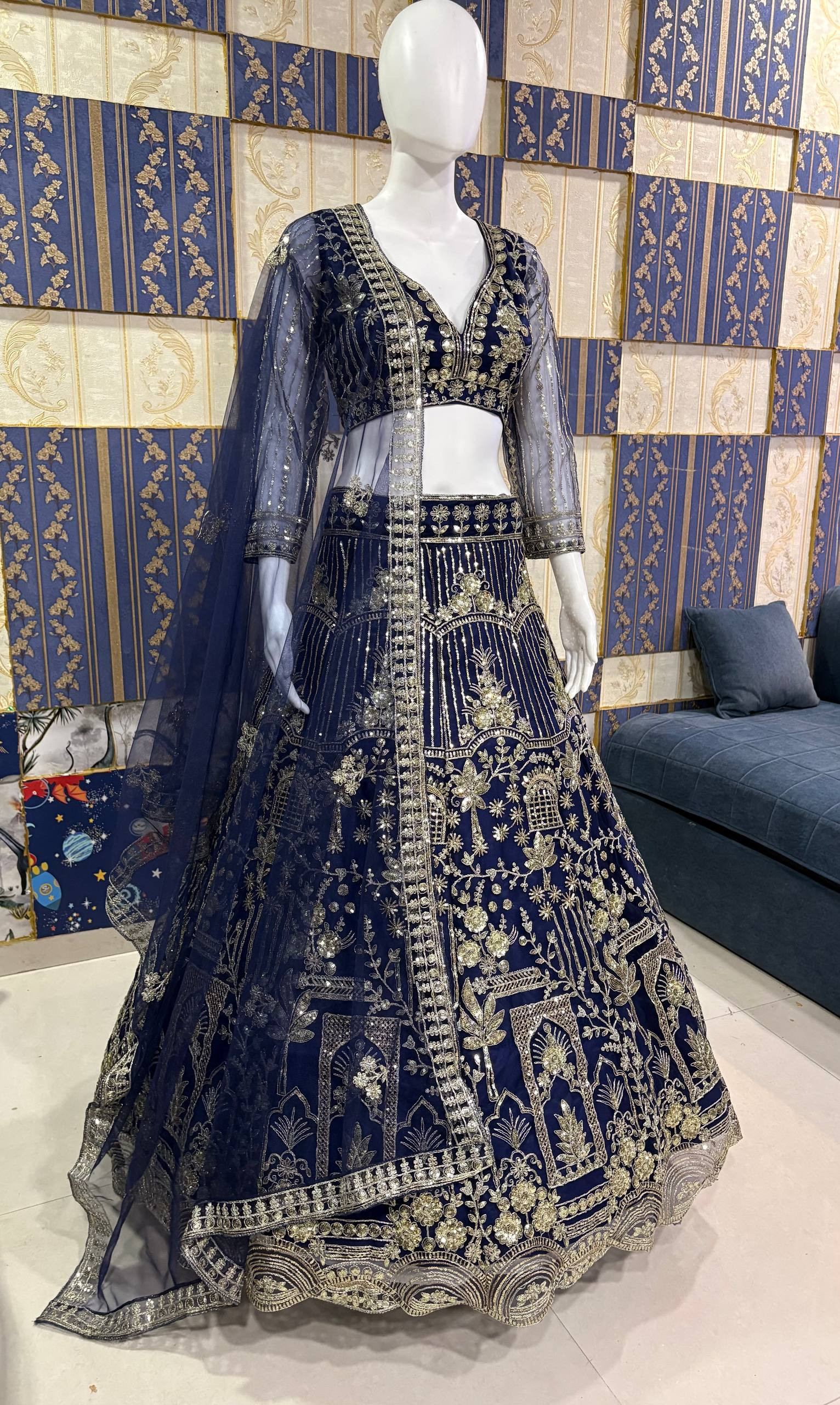 Elevate your ethnic wardrobe with this stunning 4-meter flared lehenga crafted from premium quality soft net fabric. Designed with intricate coding sequins work, this lehenga beautifully blends elegance with modern glamour. The addition of can-can and canvas layers ensures a voluminous flare while maintaining comfort throughout the day.