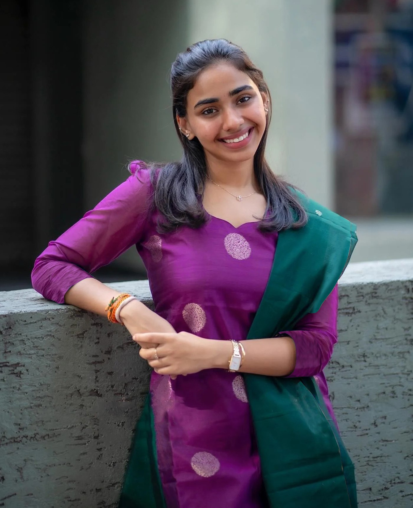 The beautiful purple kurta paired with a contrasting green pant and dupatta creates a stunning and eye-catching combination that reflects timeless ethnic charm.